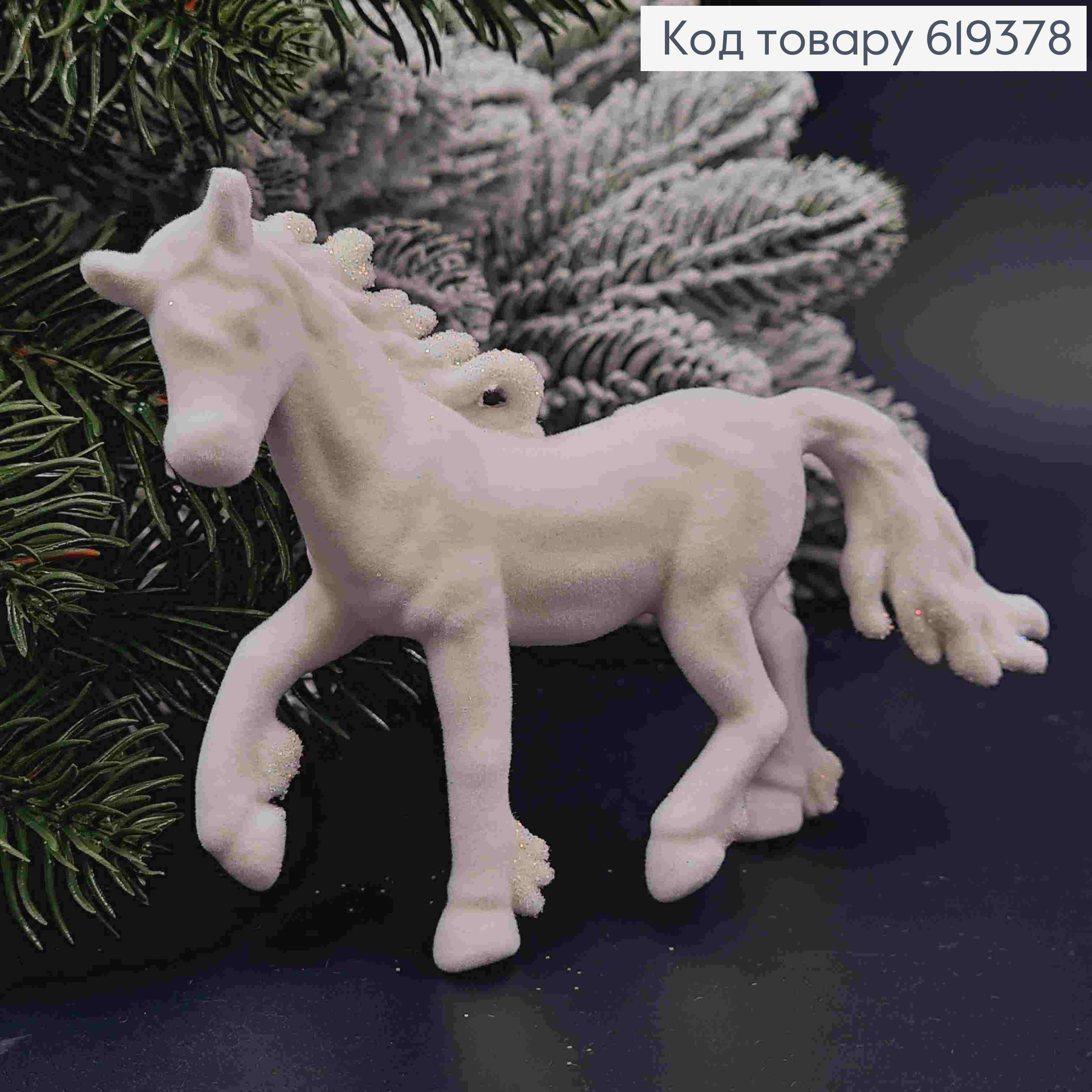 Фігурка оксамит "КОНИК-ПОНІ", БІЛИЙ з блиском, 10*10см, новорічна прикраса, пластик,Україна 619377 фото