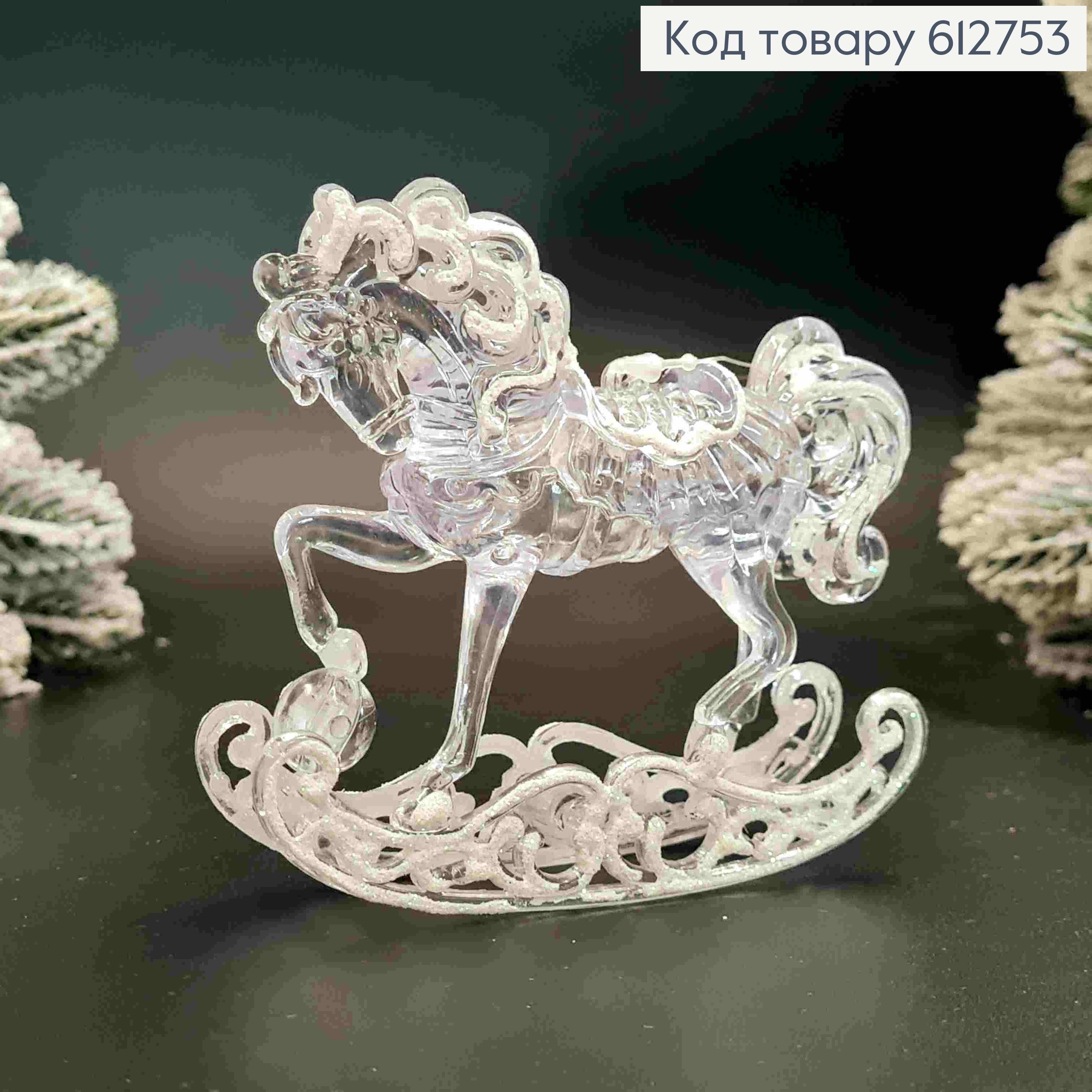 Фігурка прозора "КІНЬ на санях", з білим декором розмір 11*9см, прикраса пластикова, Україна