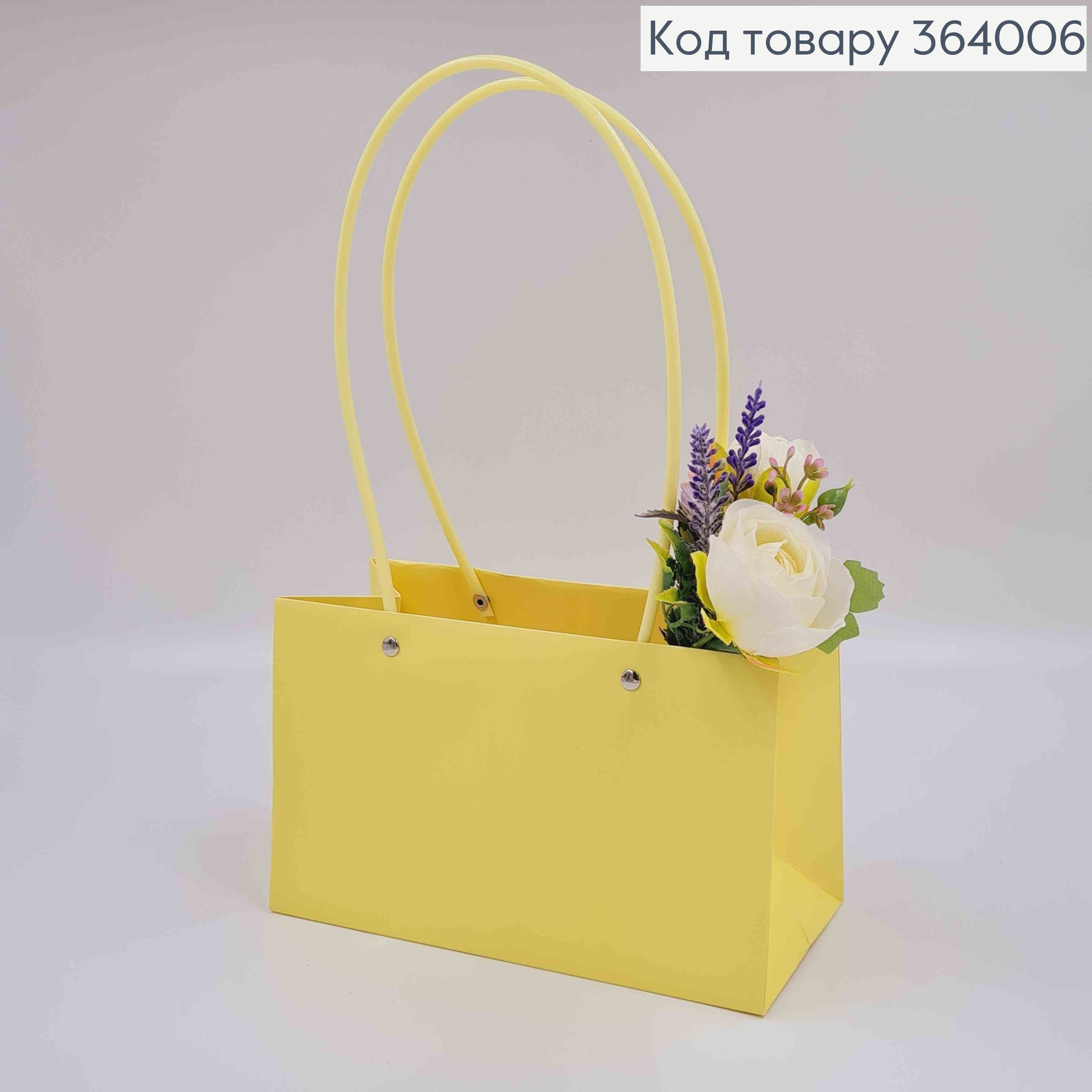 Флористична сумочка матова ЛИМОННА, для квітів та подарунків, з пластиковими ручками 22*13*9см