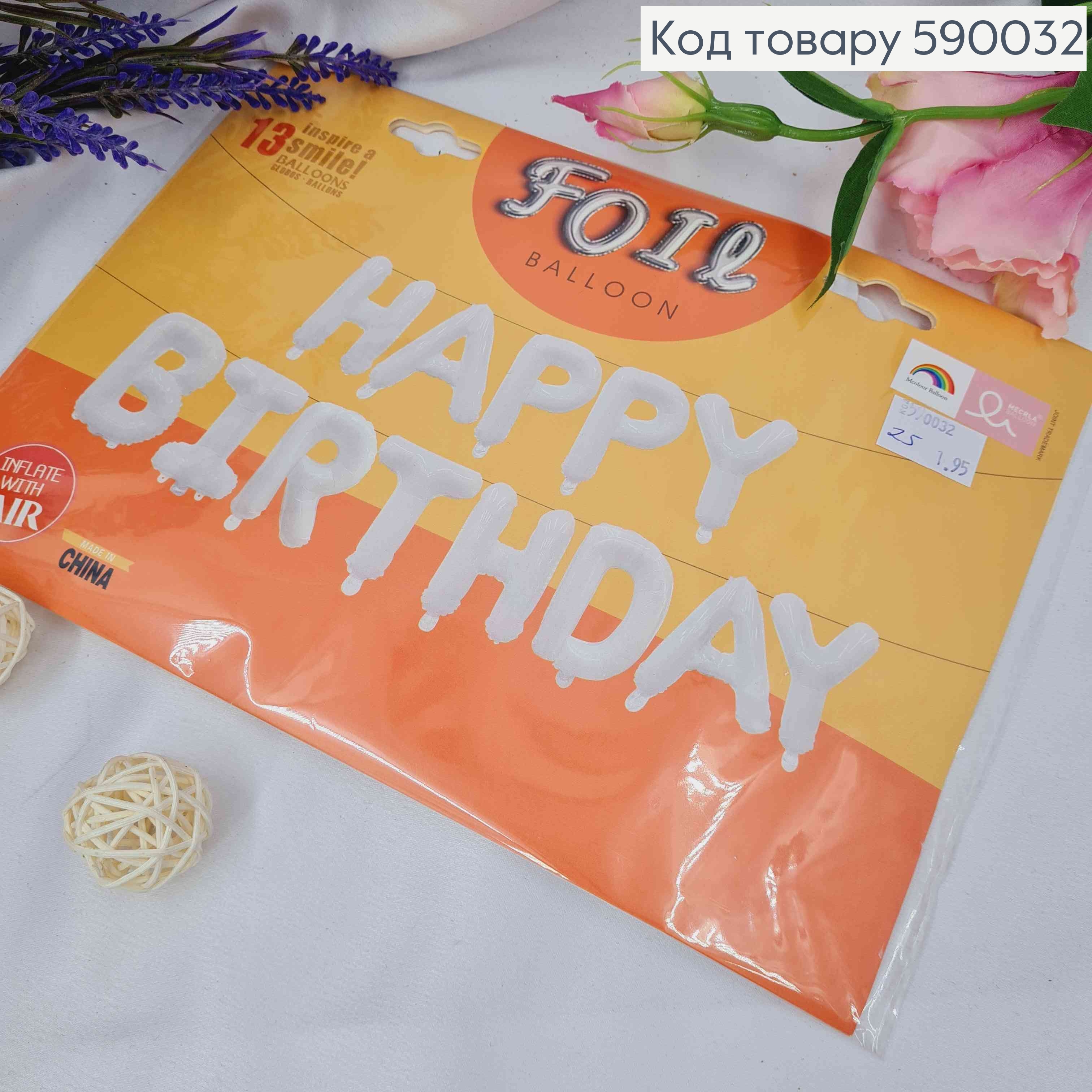 Фольгована гірлянда, Надувна, "HAPPY BIRTHDAY", БІЛОГО кольору