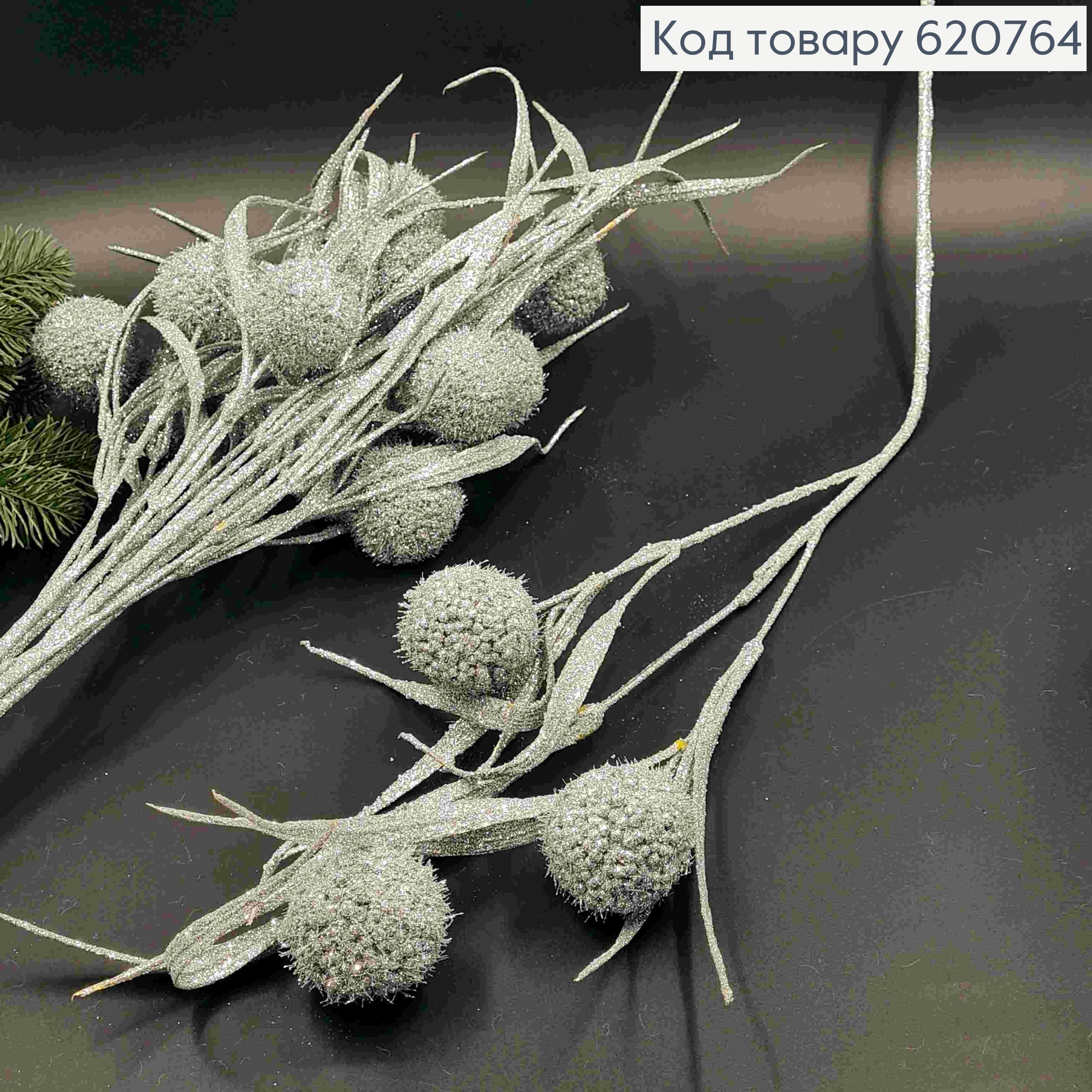 Ягідки КАЛИНИ, СРІБНОГО кольору(20шт) на металевому дротику , 1,5см+6,5см 620762 фото
