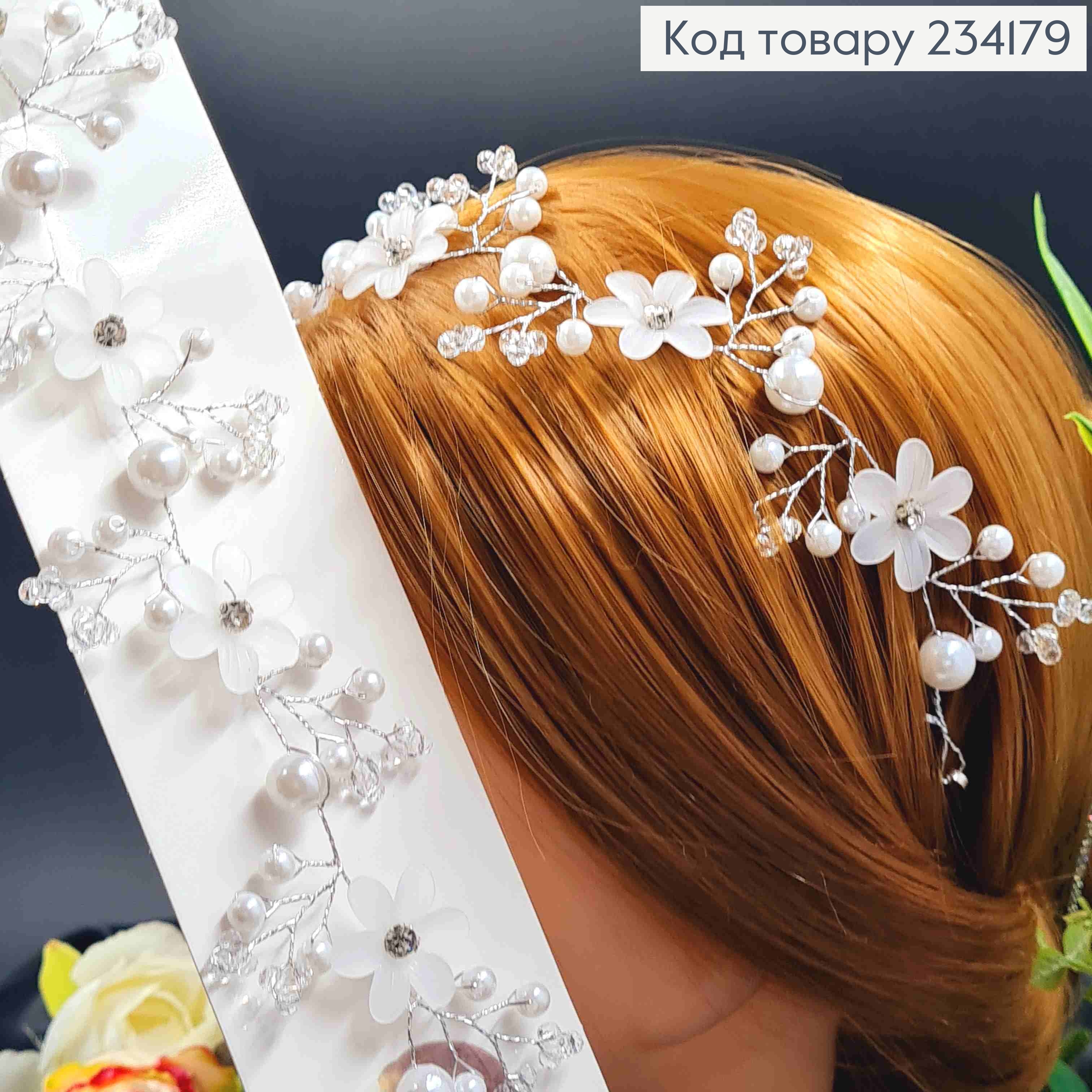 Гілочка у волосся, з Перламутровими та Прозорими Бусинками, 30см, Срібного кольору 234181 фото