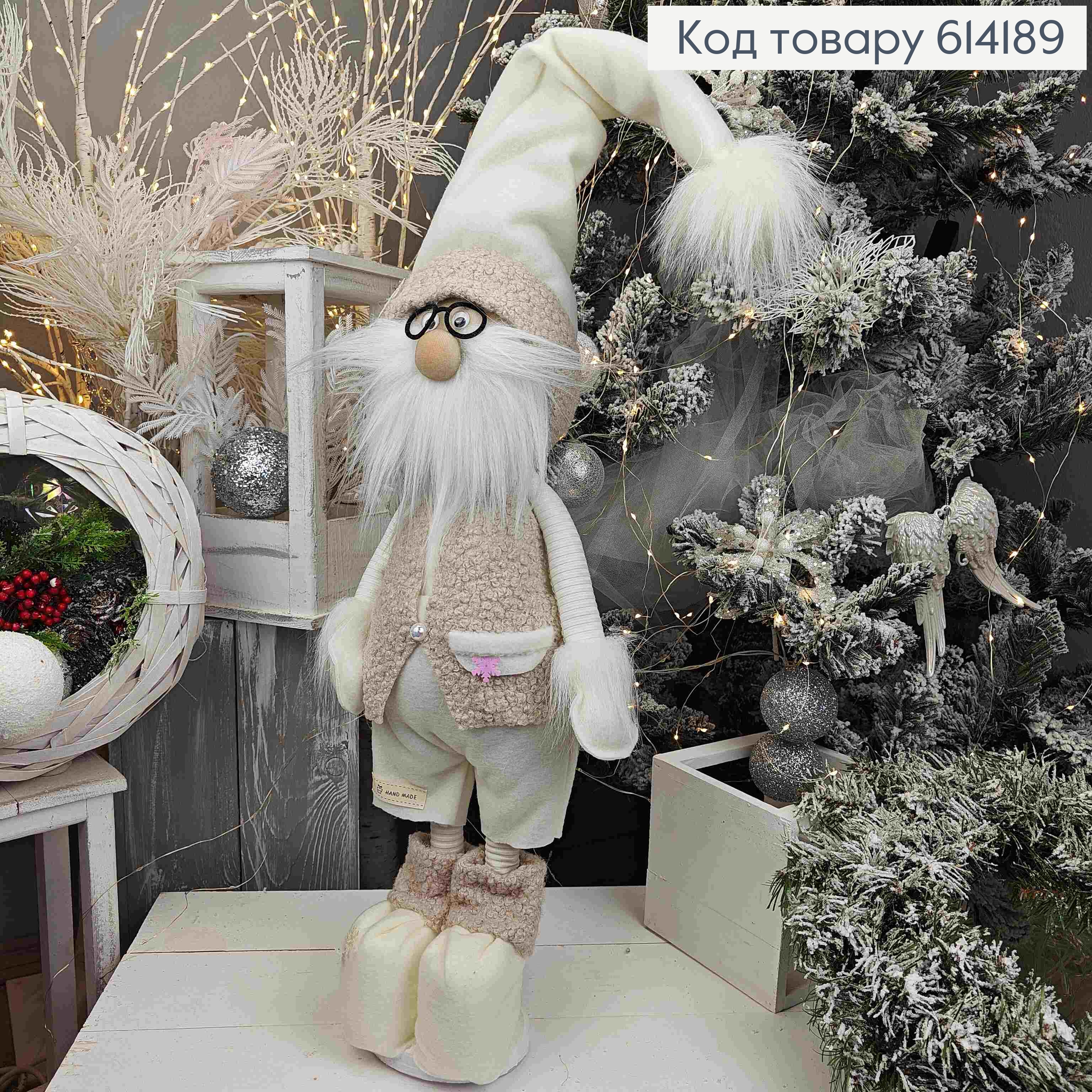 Гном в окулярах та в МОЛОЧНО-БЕЖЕВОМУ вбранні, 80см, ручна робота, Україна