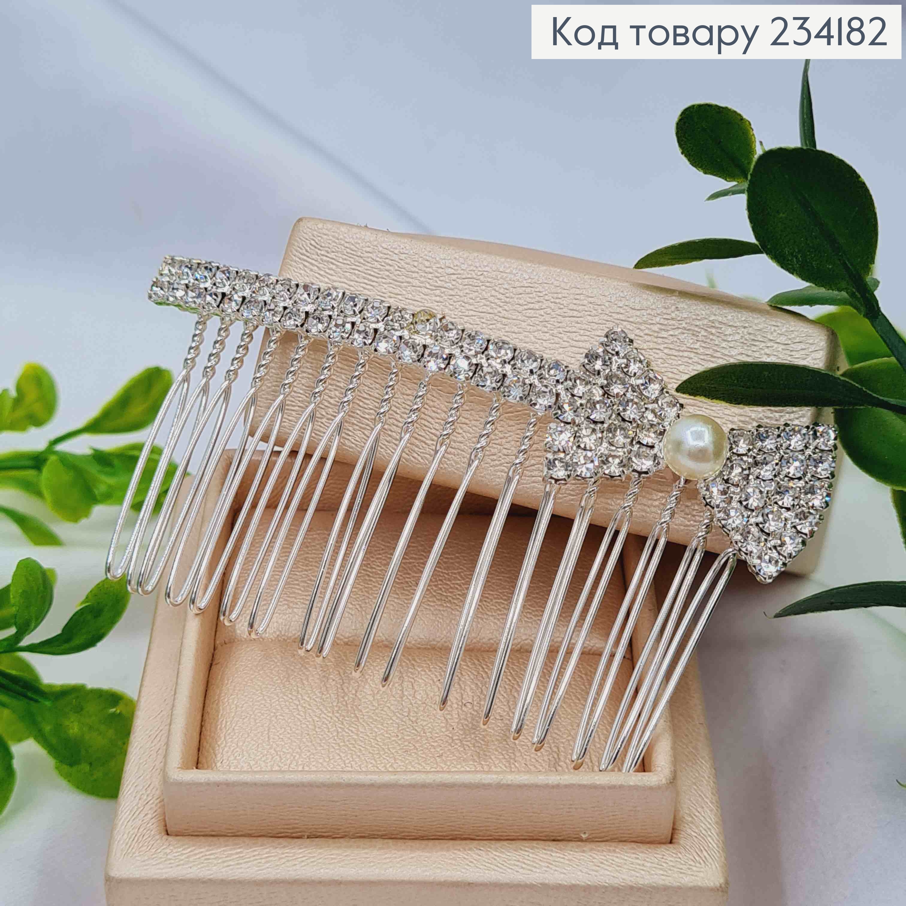 Гребінь у волосся, з Бантиком в Блискучих камінцях з Перлинкою, Срібного кольору