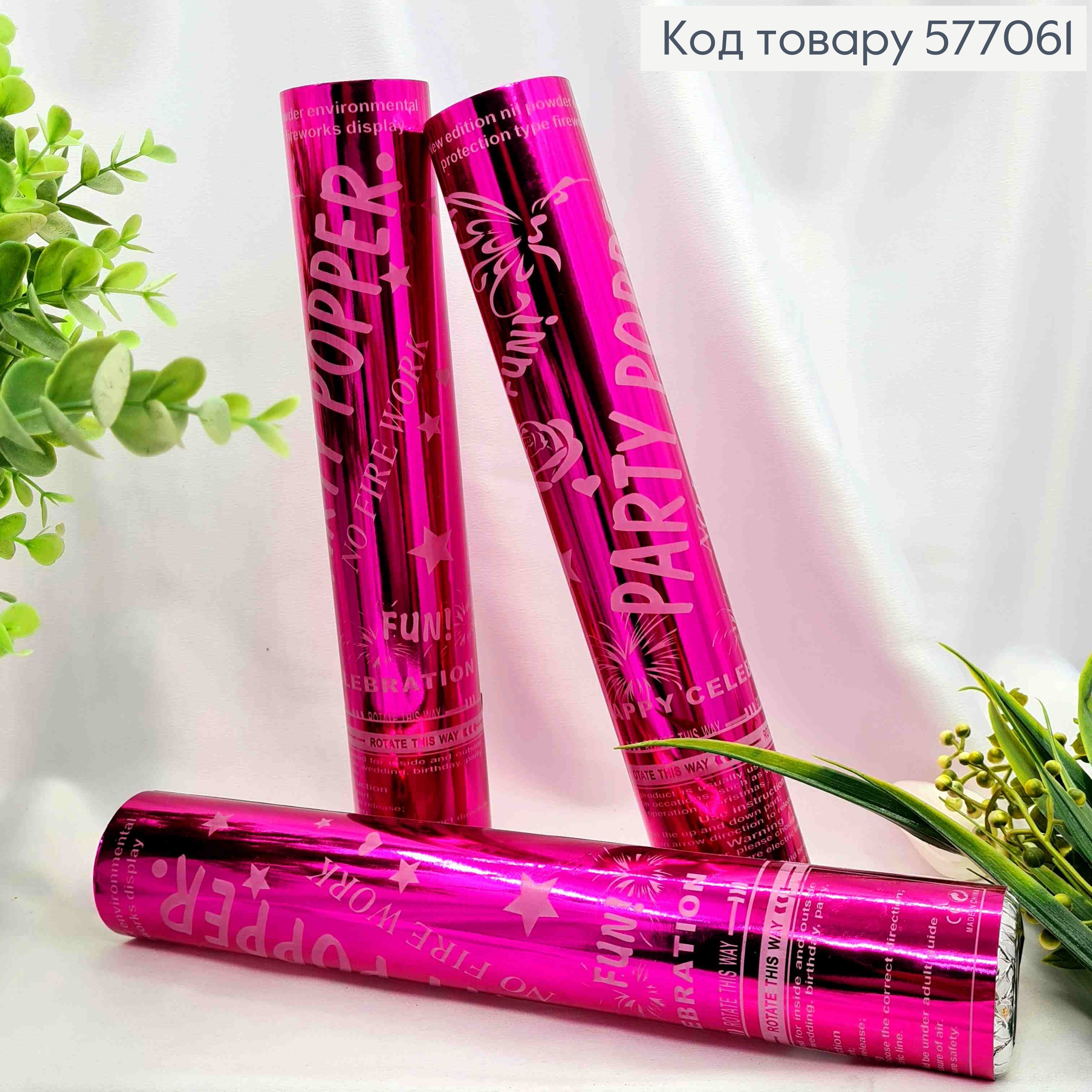 Хлопавка 28см, святкова, конфеті кольору Фуксія