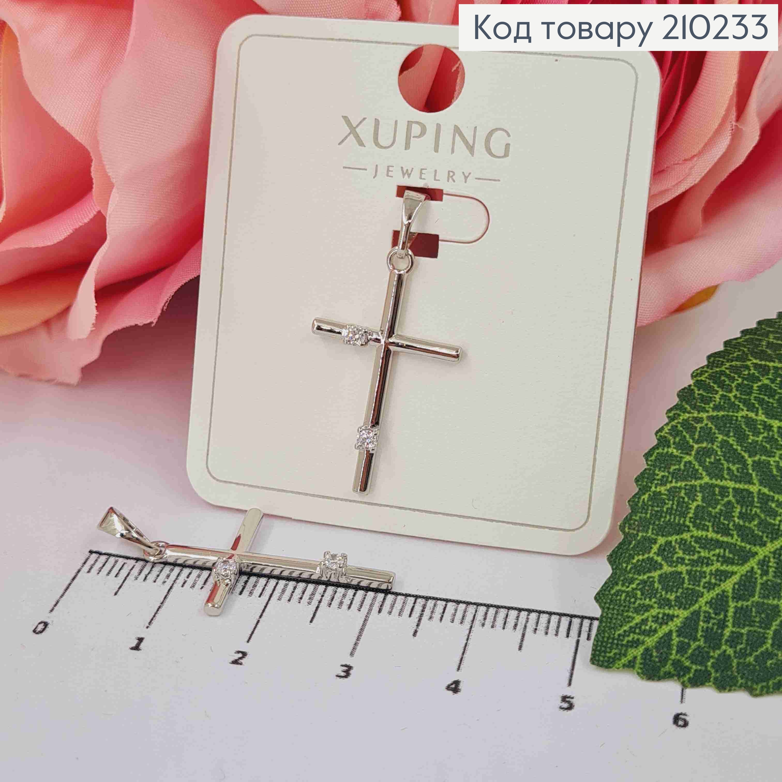 Хрестик   родований з розп"яттям та в камінцях, розмір 2,8*2см  Xuping (срібного кольору) 210280 фото