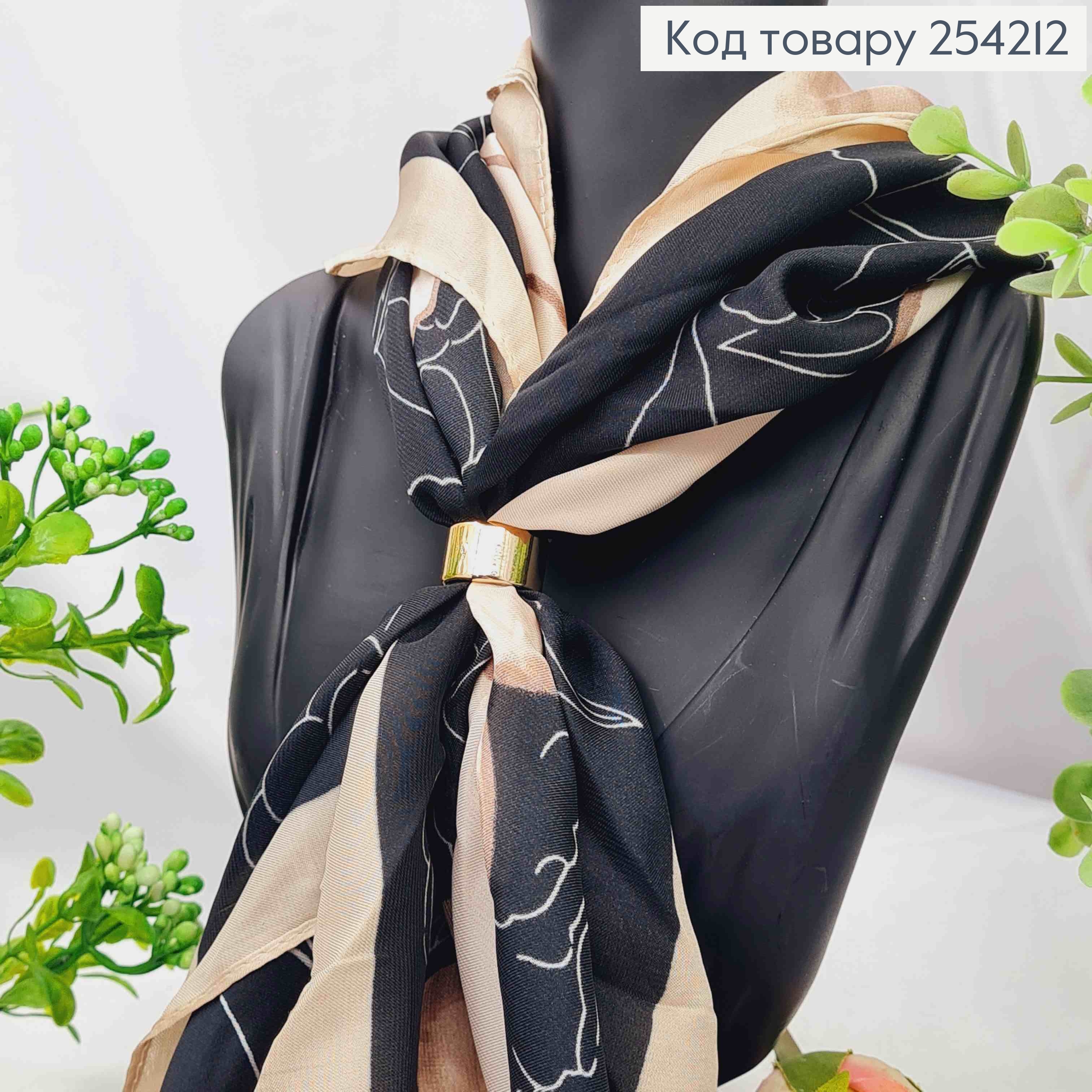 Хустка з колечком, Чорно-Кремового кольору з малюнком "Квітка", 70*70см, 100% поліестр (шовк)