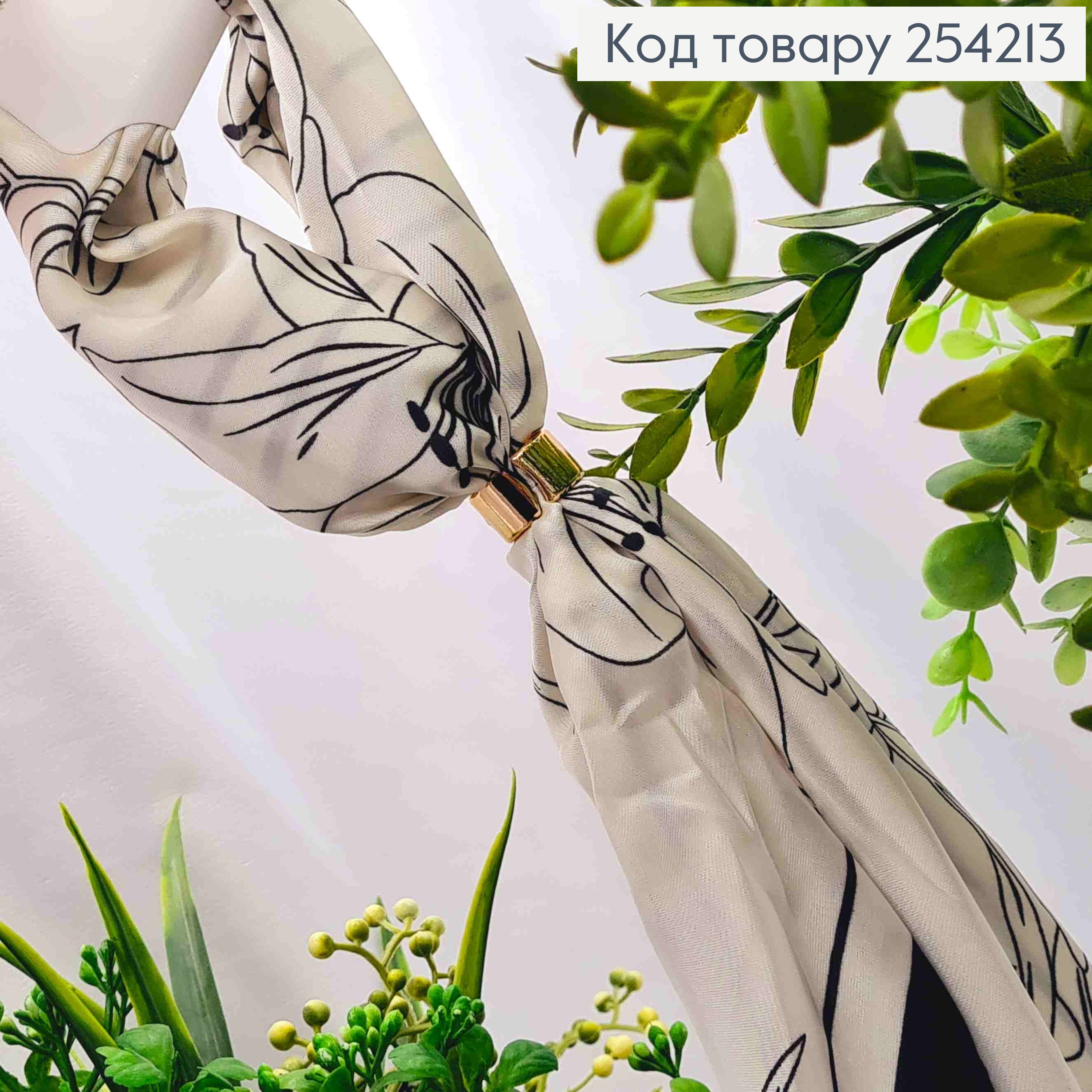 Хустка з колечком, кольору Айворі з малюнком "Квітка", 70*70см, 100% поліестр (шовк)