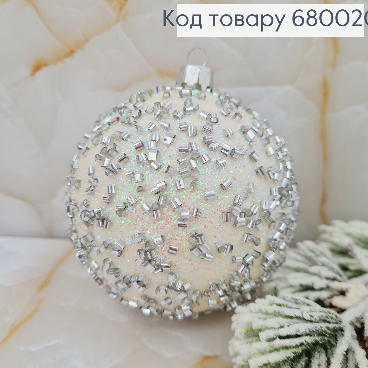 Іграшка куля 80 мм Бісеринка перламутрово срібний