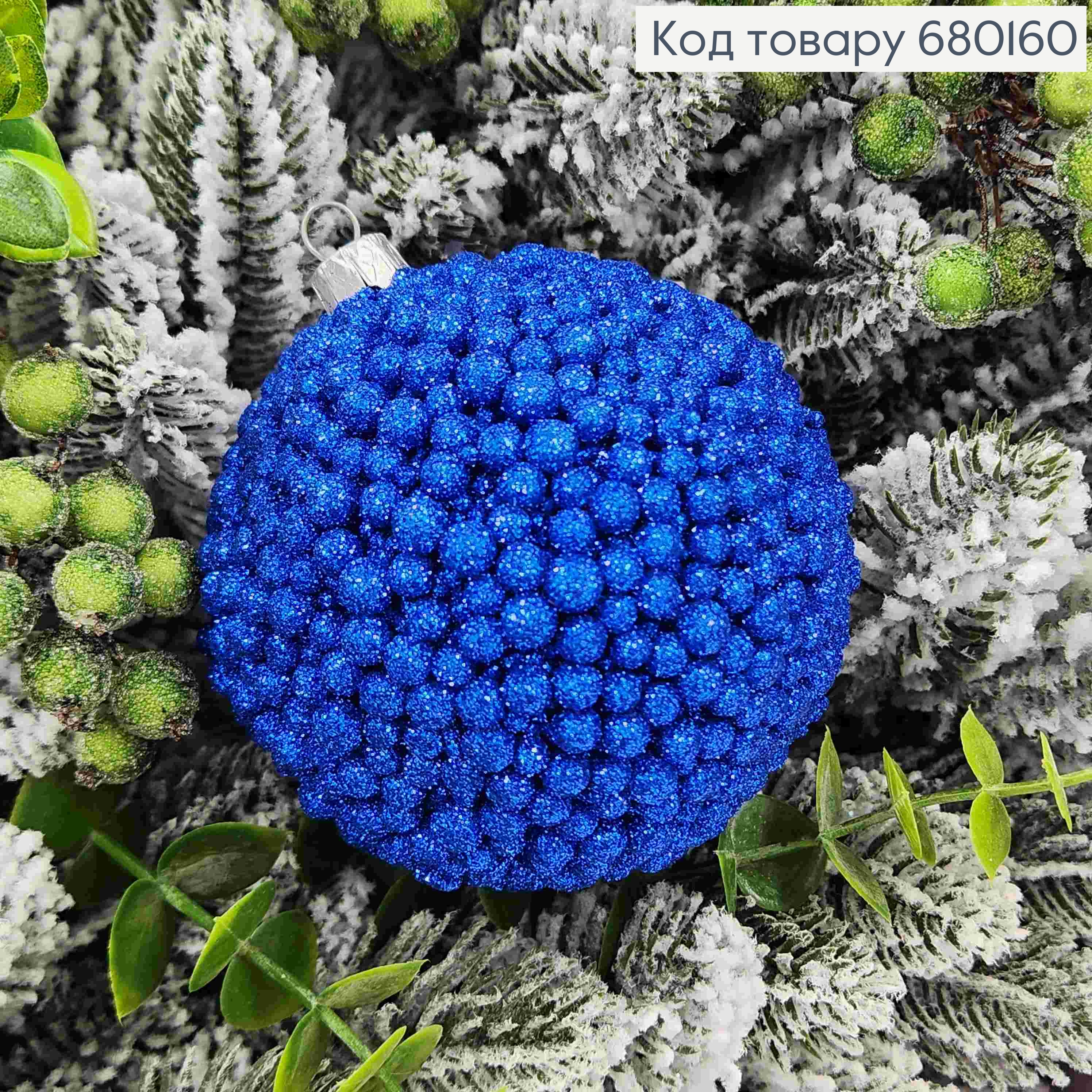 Іграшка куля(1шт) 80мм "ОКСАМИТ+ЛАЦЮЖОК" СИНІЙ колір, новорічна прикраса пластикова,Україна 680277 фото