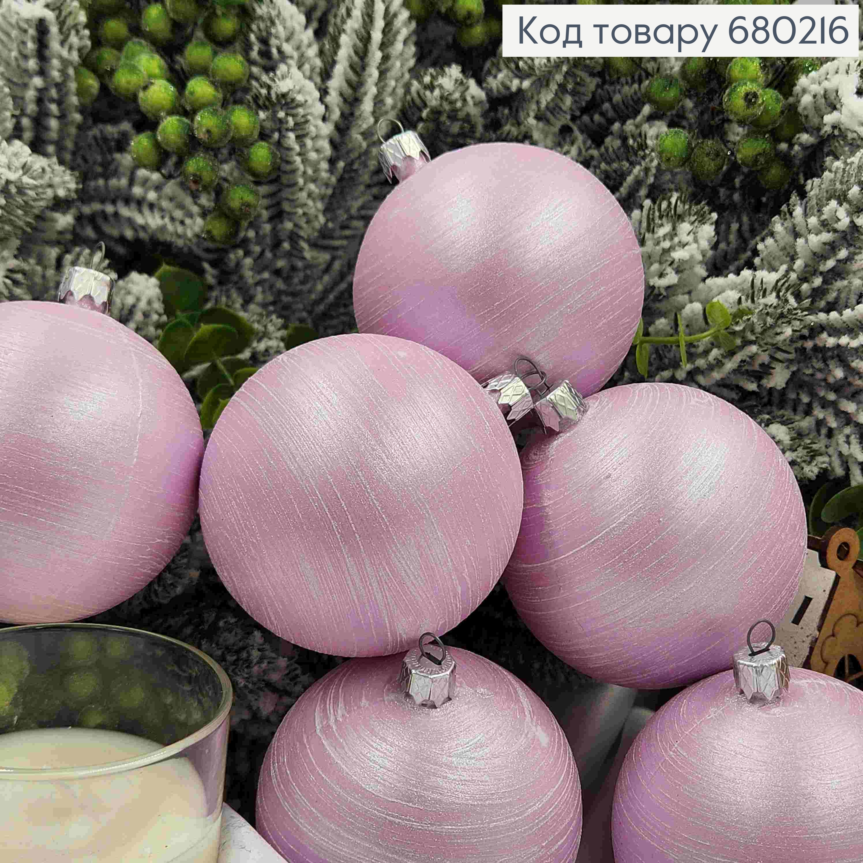 Набір іграшок 80мм (6шт) "ПАСТЕЛЬ +рис", РОЗОВИЙ колір, новорічні прикраси, пластик, Україна 680276 фото