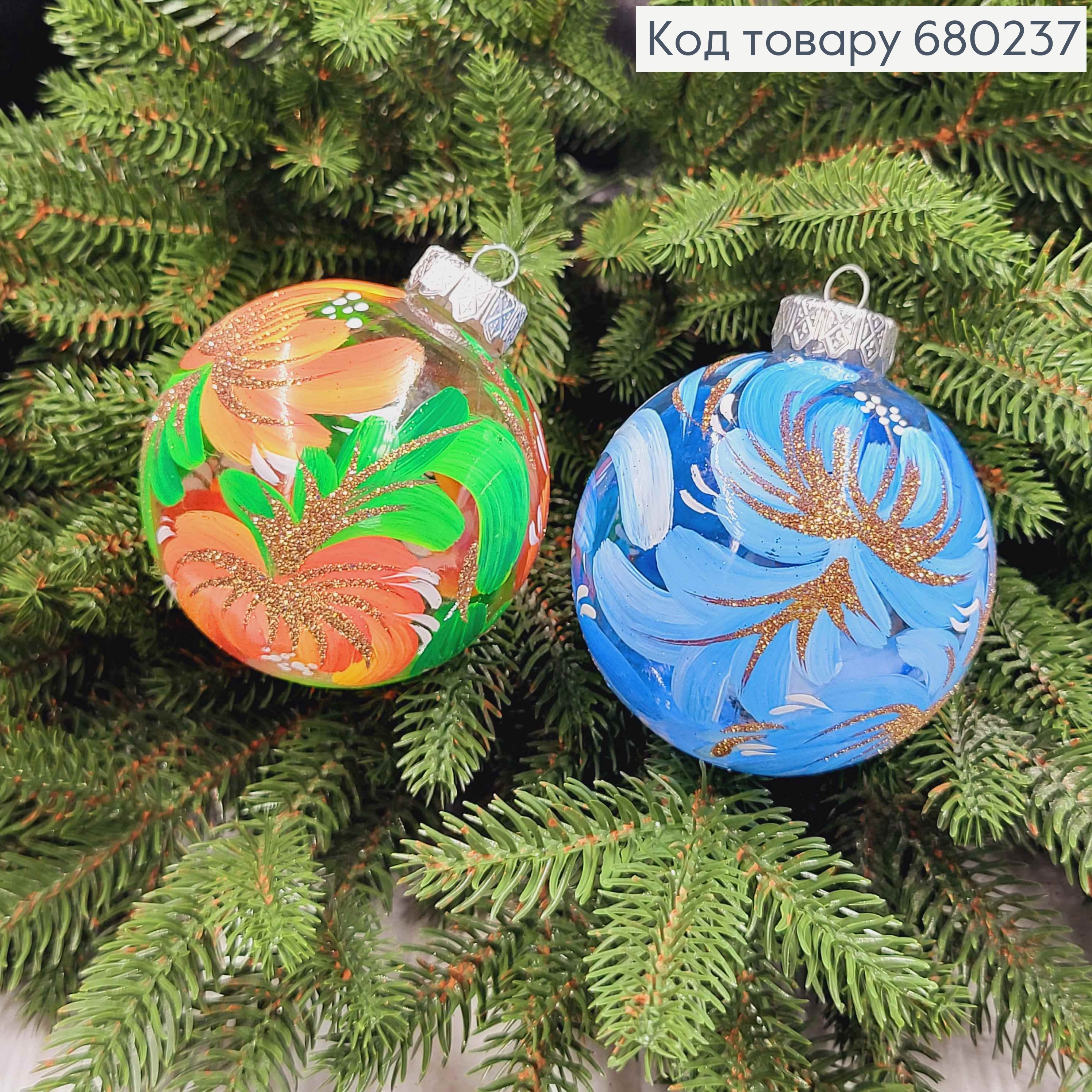 Іграшка куля 80мм ПРОЗОРА з розписом в асорт.,1шт, ручна робота, Україна