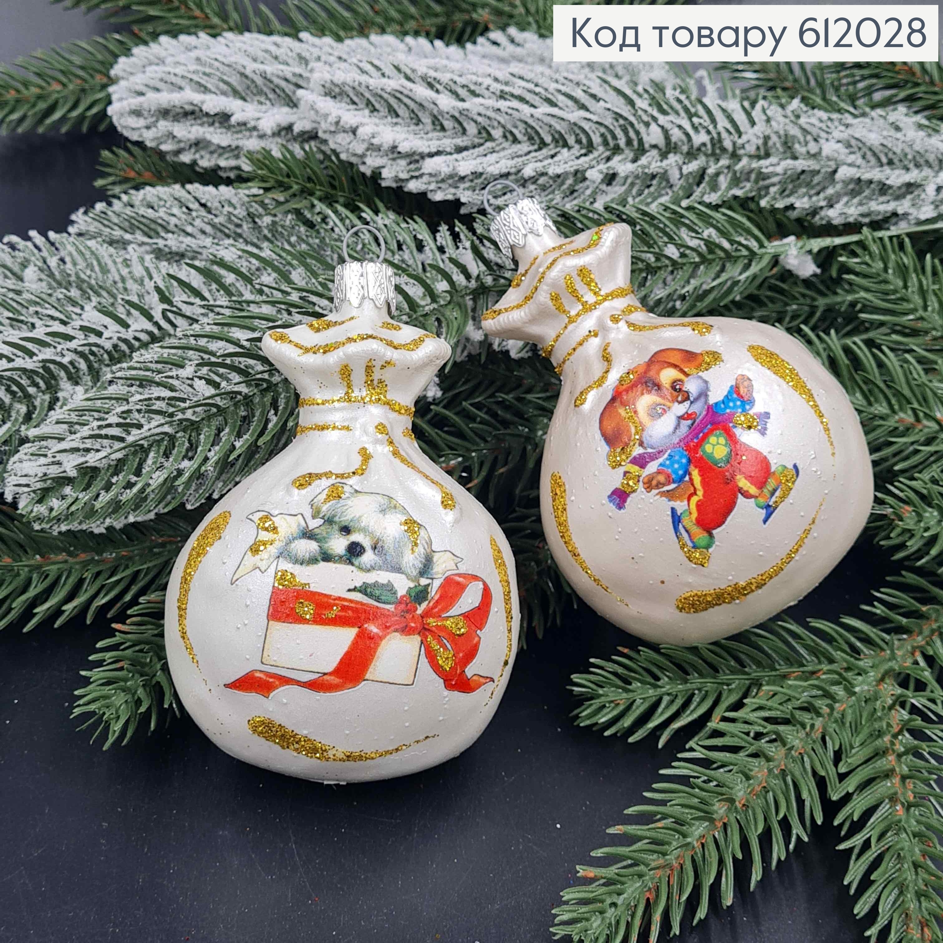 Іграшка на ялинку мішечок Новорічний мотив з песиками , 8 см