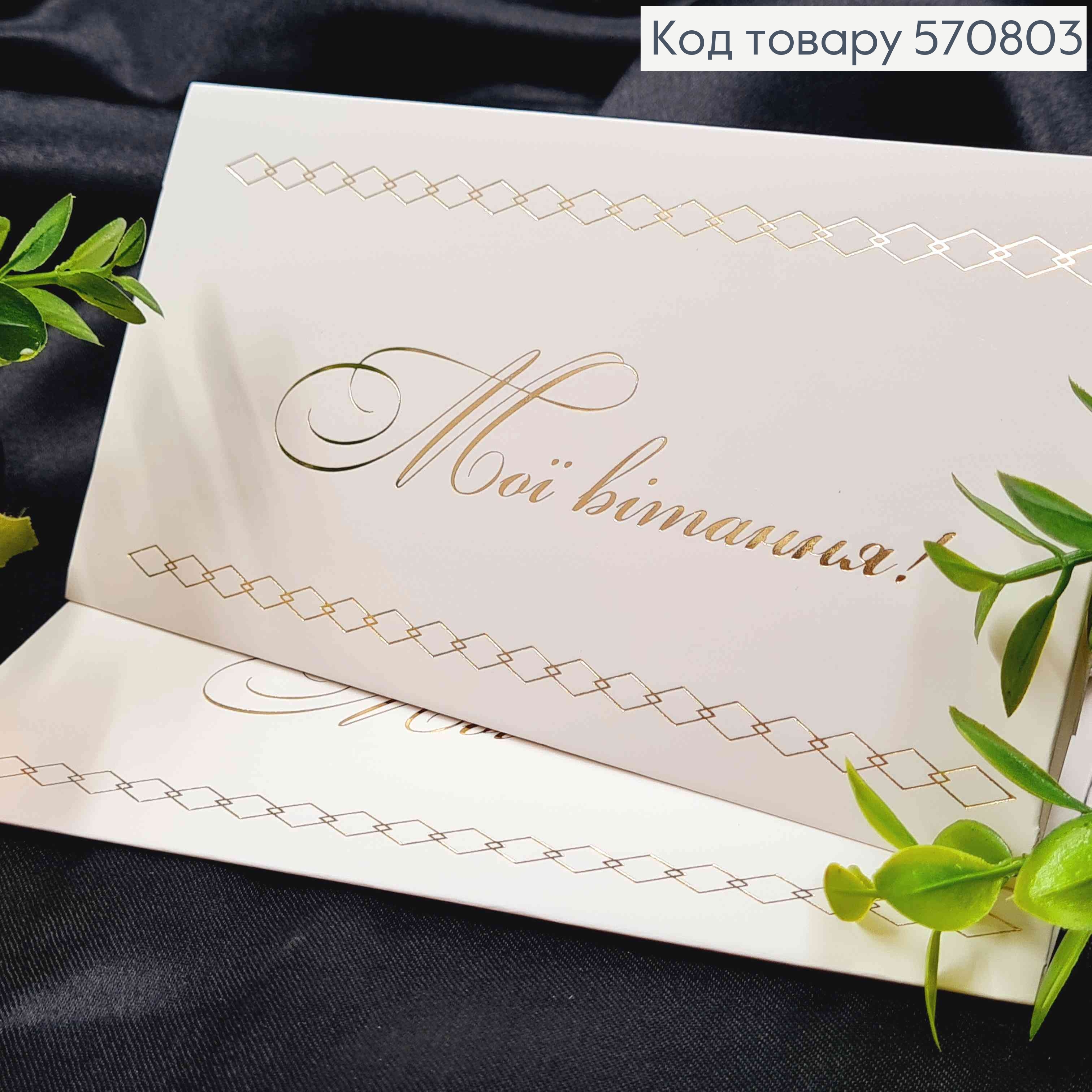 Конверт Білий з ЗОЛОТИМ тисненням "Мої вітання!", 16,5*8,5см, 10шт\уп