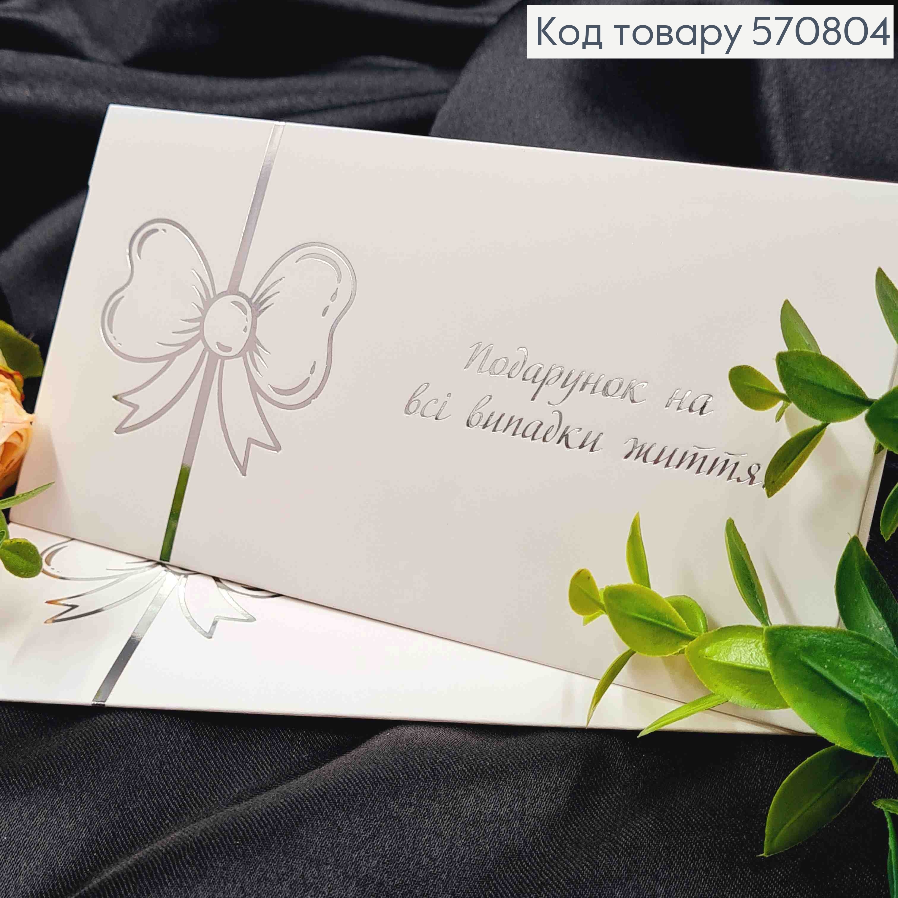 Конверт Білий зі СРІБНИМ тисненням "Подарунок на всі випадки життя!", 16,5*8,5см, 10шт\уп