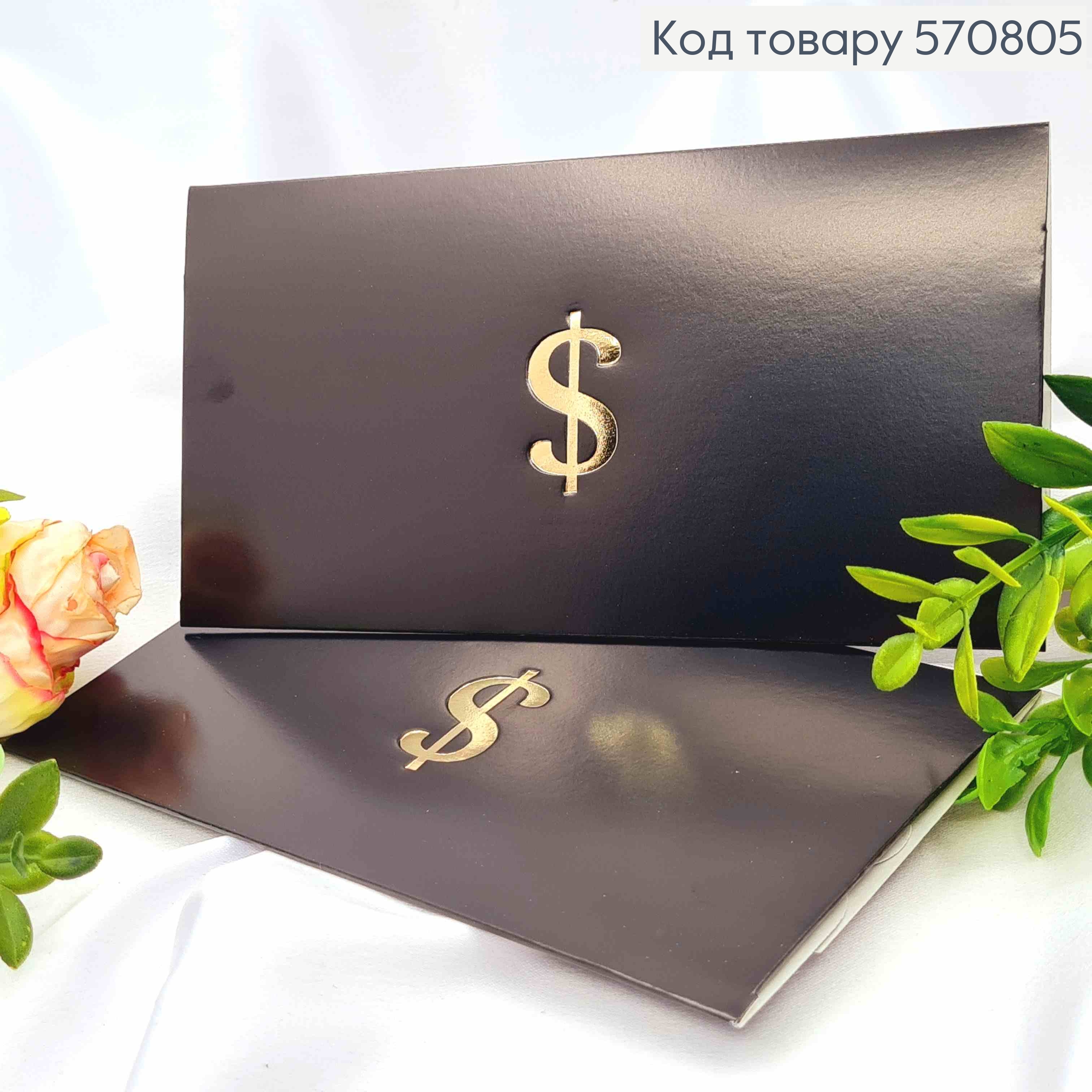 Конверт Чорний з ЗОЛОТИМ тисненням "$", 16,5*8,5см, 10шт\уп