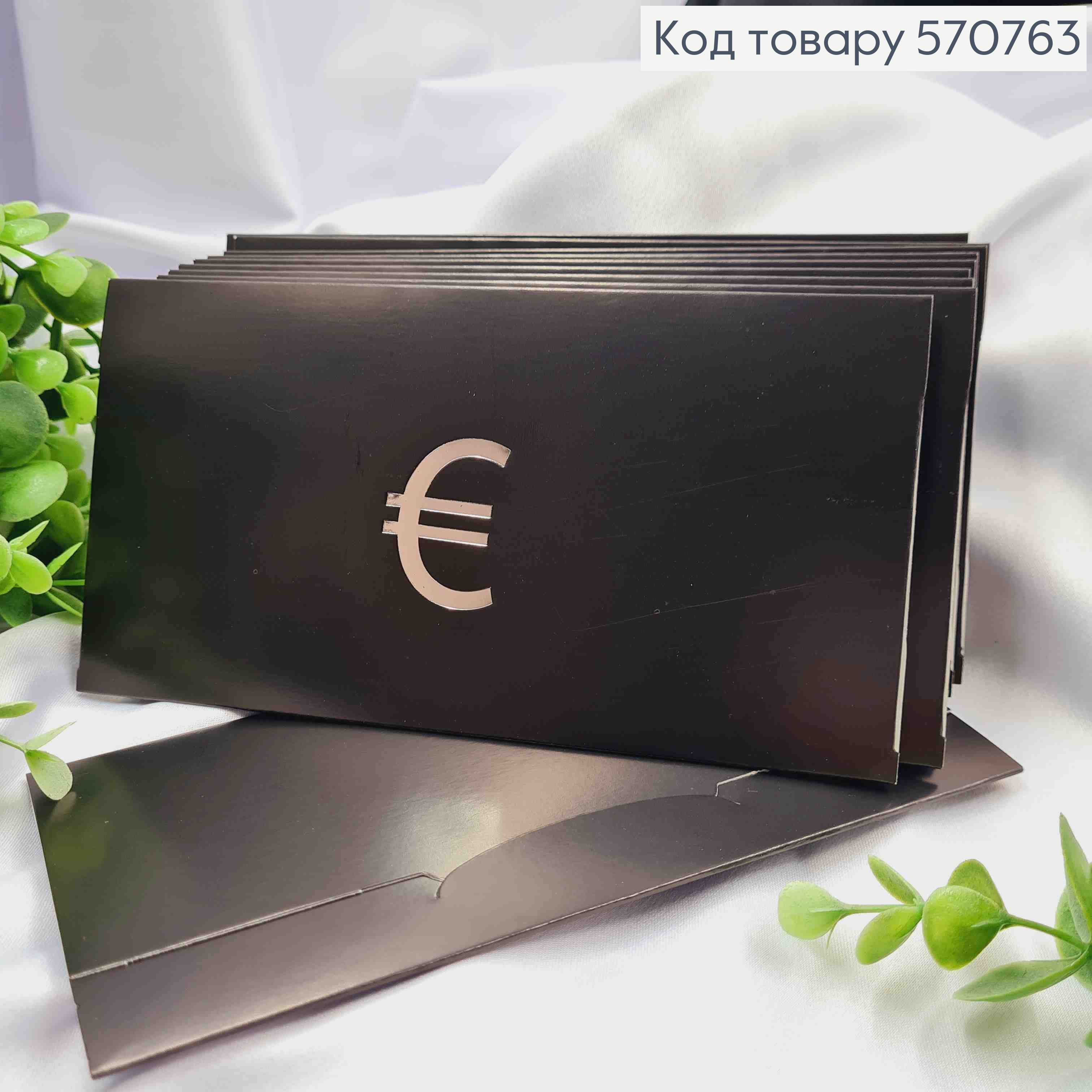 Конверт Чорний зі СРІБНИМ тисненням " € ", 16,5*8,5см, 10шт\уп