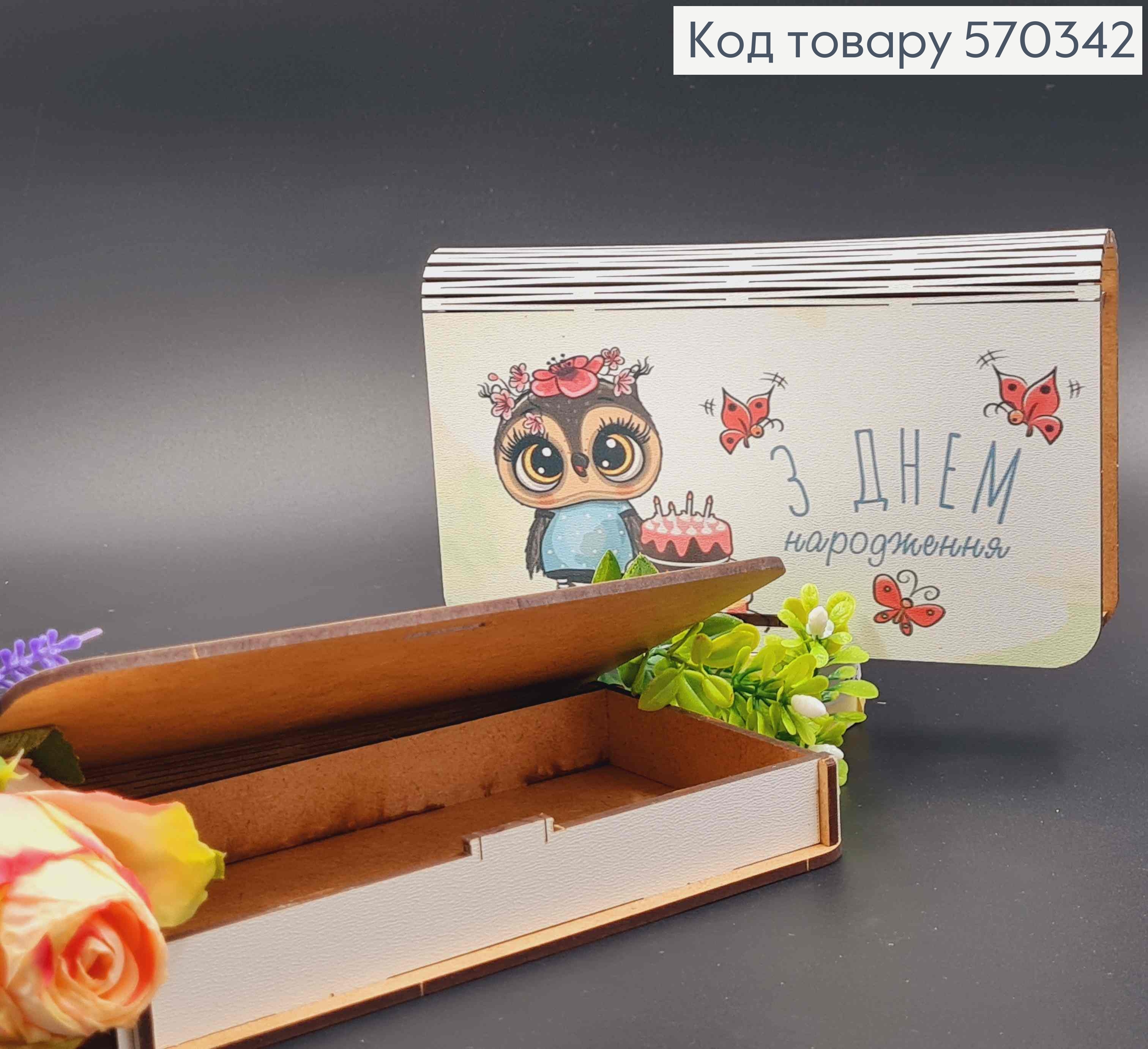 Конверт дерев'яний подарунковий "З Днем Народження!", 19*11см, ручна робота 570338 фото