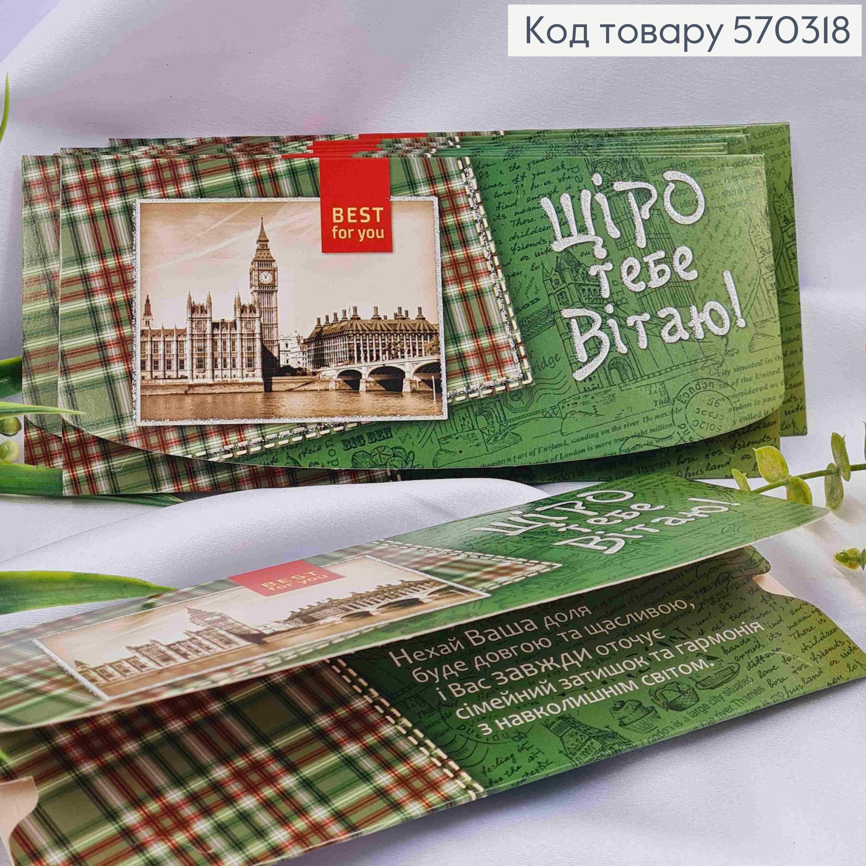 Конверт "Щіро тебе вітаю!", зелений з БігБеном, 17*8см, 10шт\уп