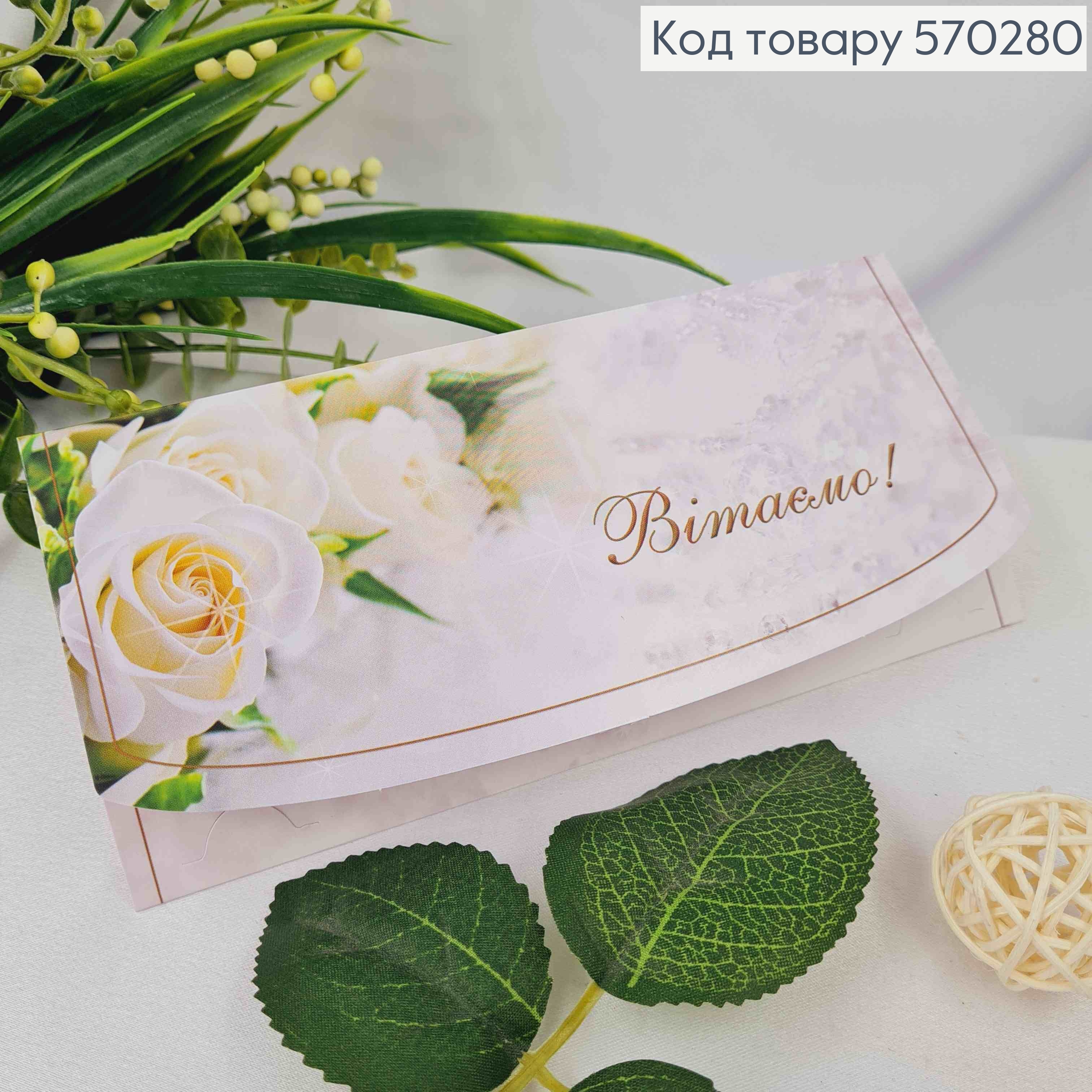 Конверт "Поздравляем" с Белыми розами, 17*8см 10шт/уп