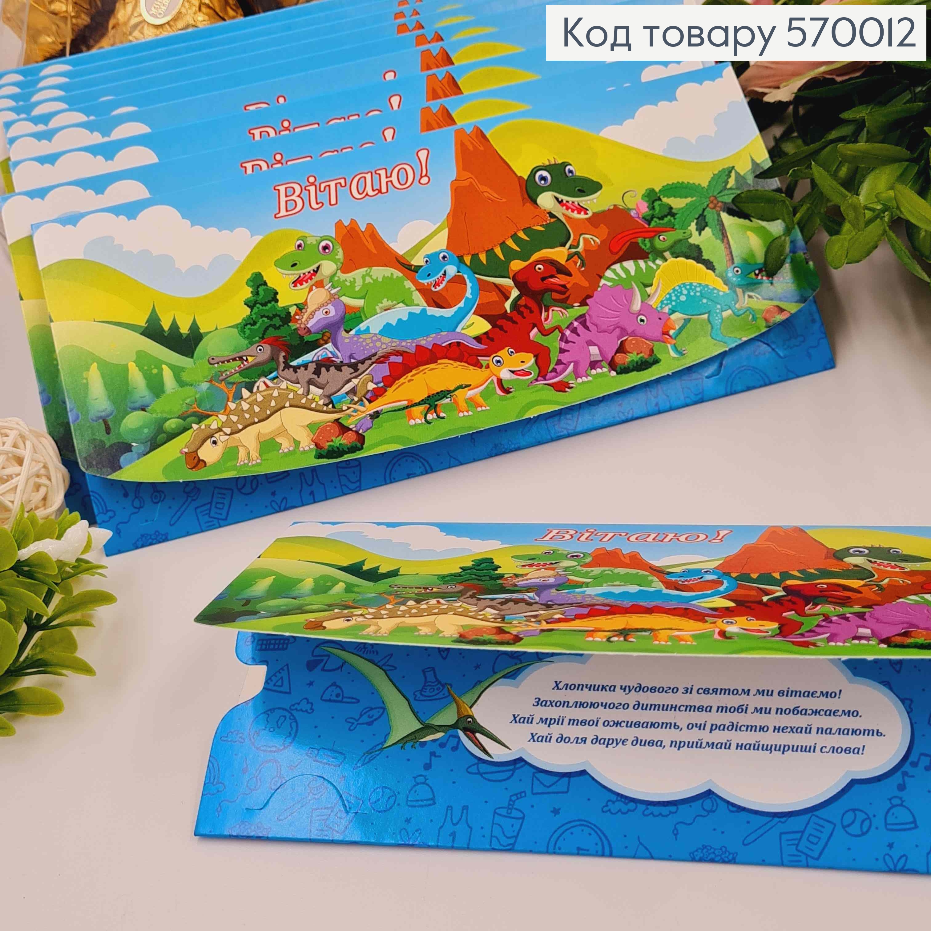 Конверт "Вітаю", з кольоровими Динозаврами, 17*8см, 10шт\уп