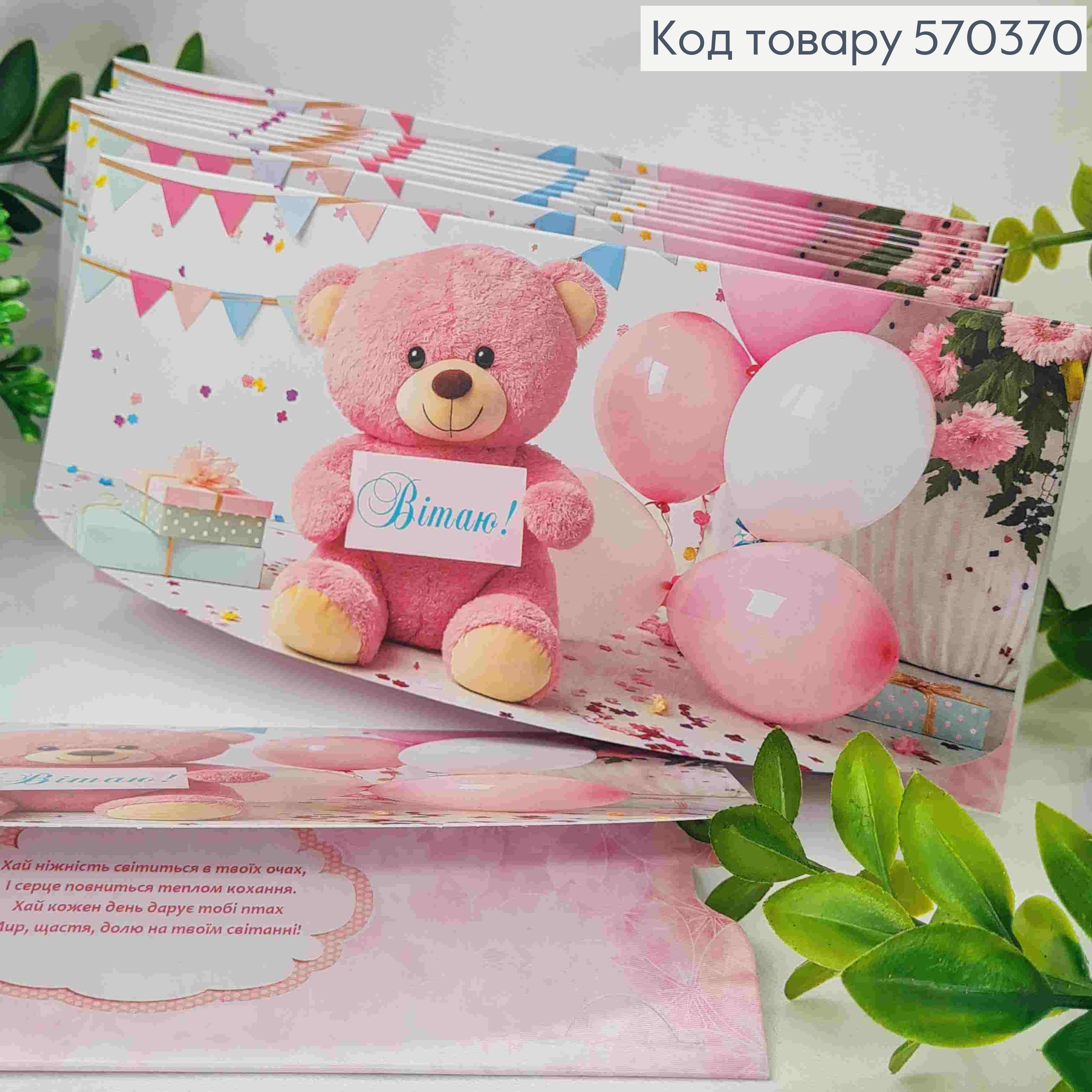 Конверт "Вітаю!", з повітряними кульками та плюшевим ведмедем, 17*8см, 10шт\уп