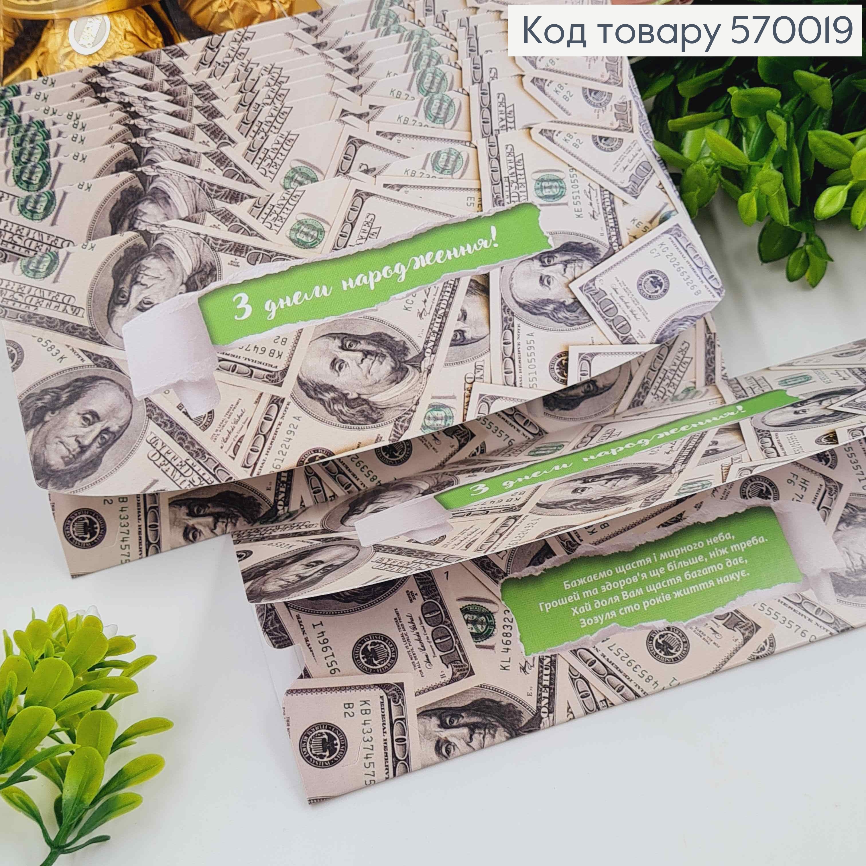 Конверт "З днем Народження", з Стодоларовими купюрами, 17*8см, 10шт\уп