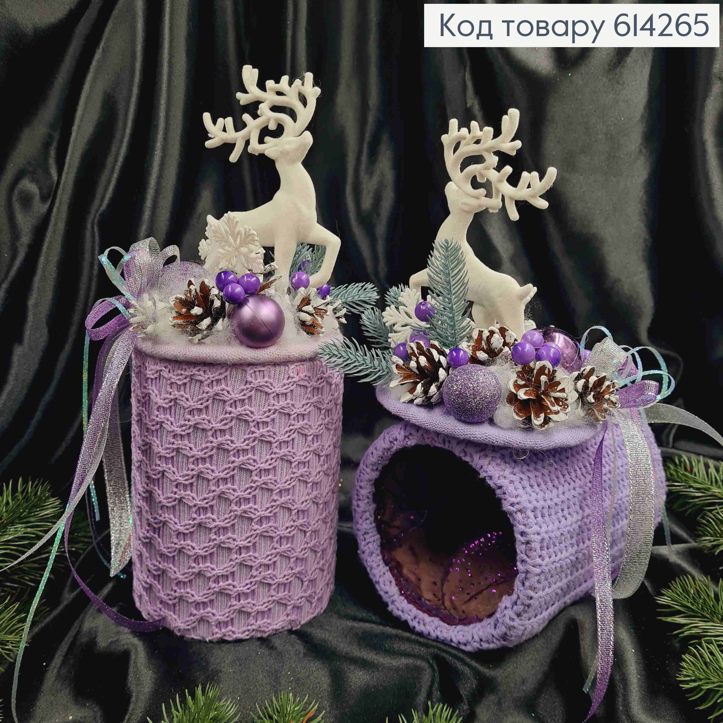 Коробка (11*15см) ФІОЛЕТОВА +кришка з ОЛЕНЕМ (висота 16см),декорована, ручна робота, Україна