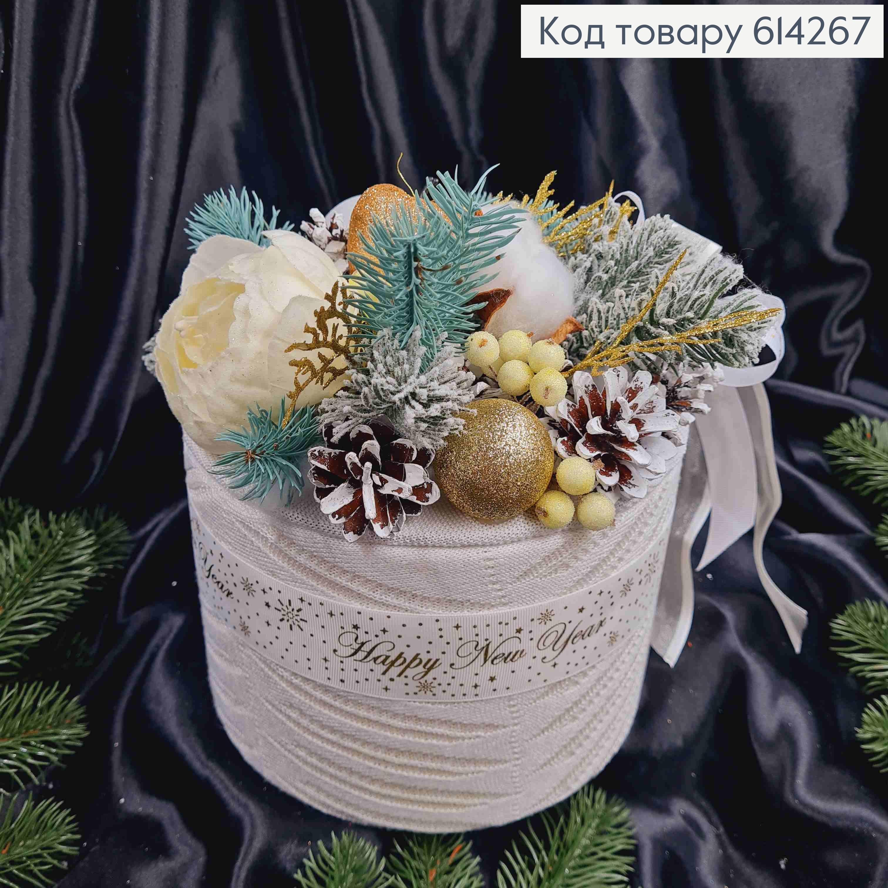Коробка (14*20см)АЙВОРІ "HappyNewYear"+кришка Новорічна композиція(висота 9см),ручна робота, Україна