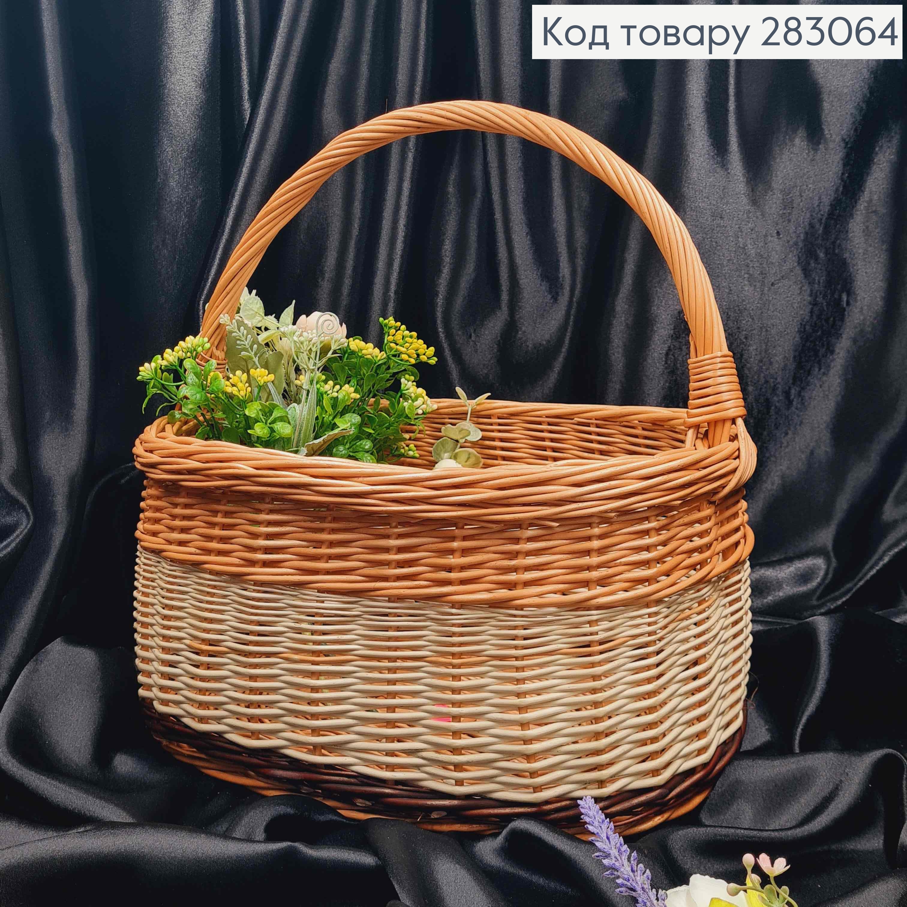 Кошик плетений овальний, "КОБРА" з "спідничкою", 40*26*17см, +ручка 19см, УКРАЇНА 283127 фото