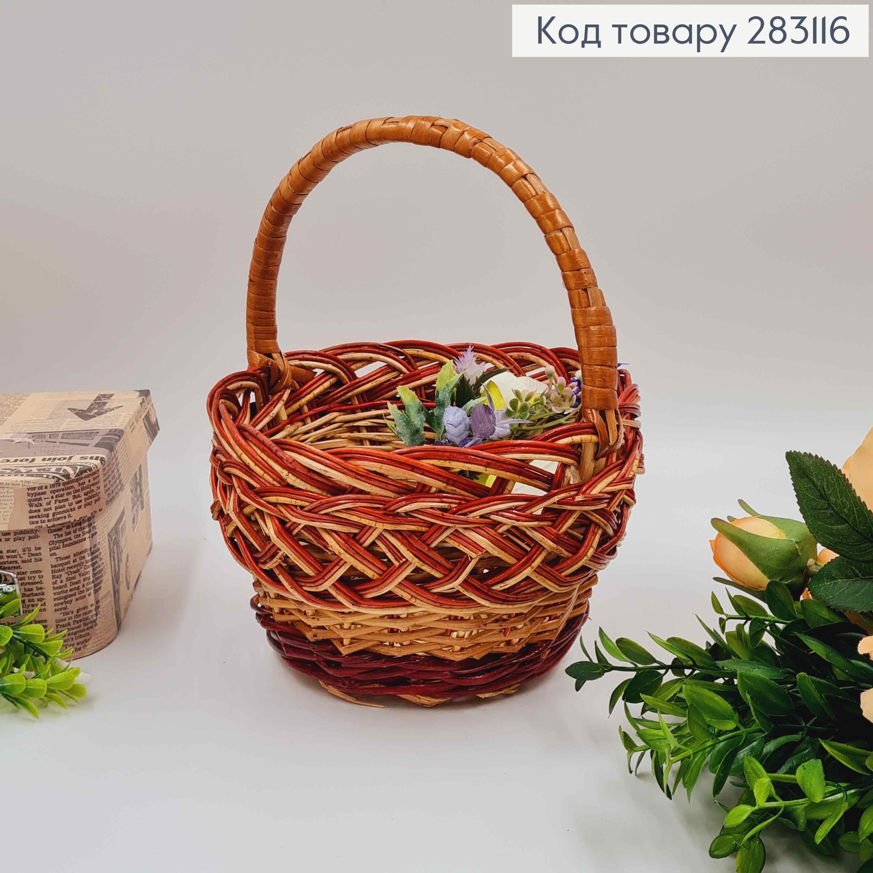 Кошик плетений Коричневі тона, КРУГЛИЙ, 18*11см, +ручка 10см, УКРАЇНА