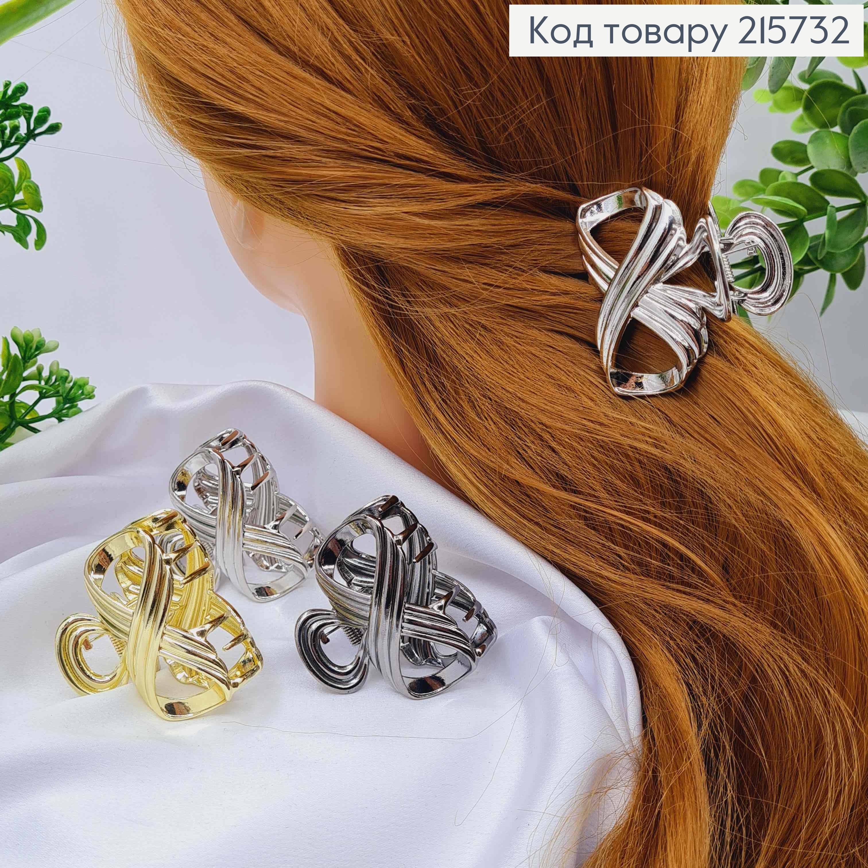 Краб метал, "Три сплетених кільця", 5см, Золото/Срібло/Металік кольори в асорт. 215777 фото