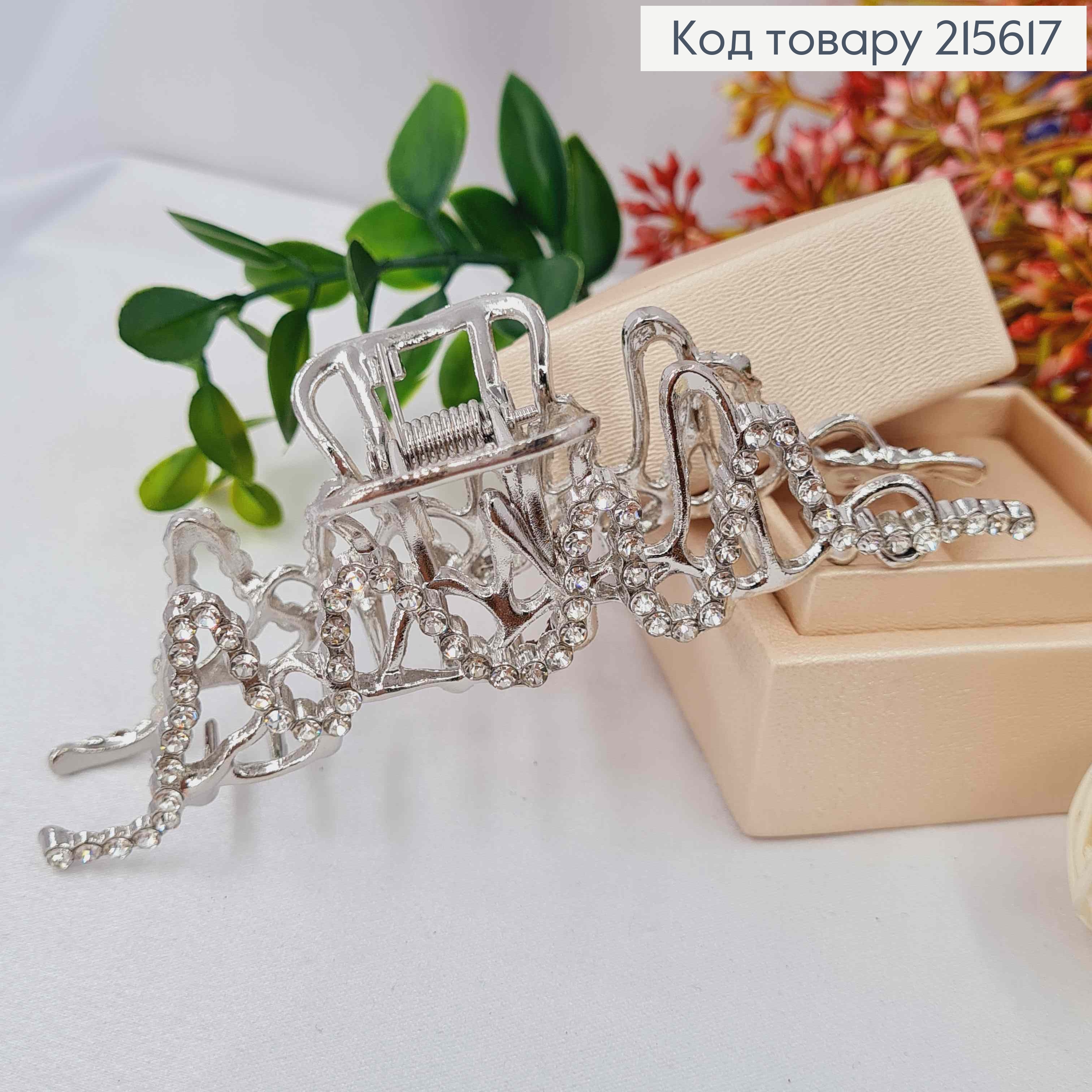 Краб метал  "Бантик з Колоском" прикрашений Блискучими камінцями, 11,5см, Срібного кольору 215773 фото