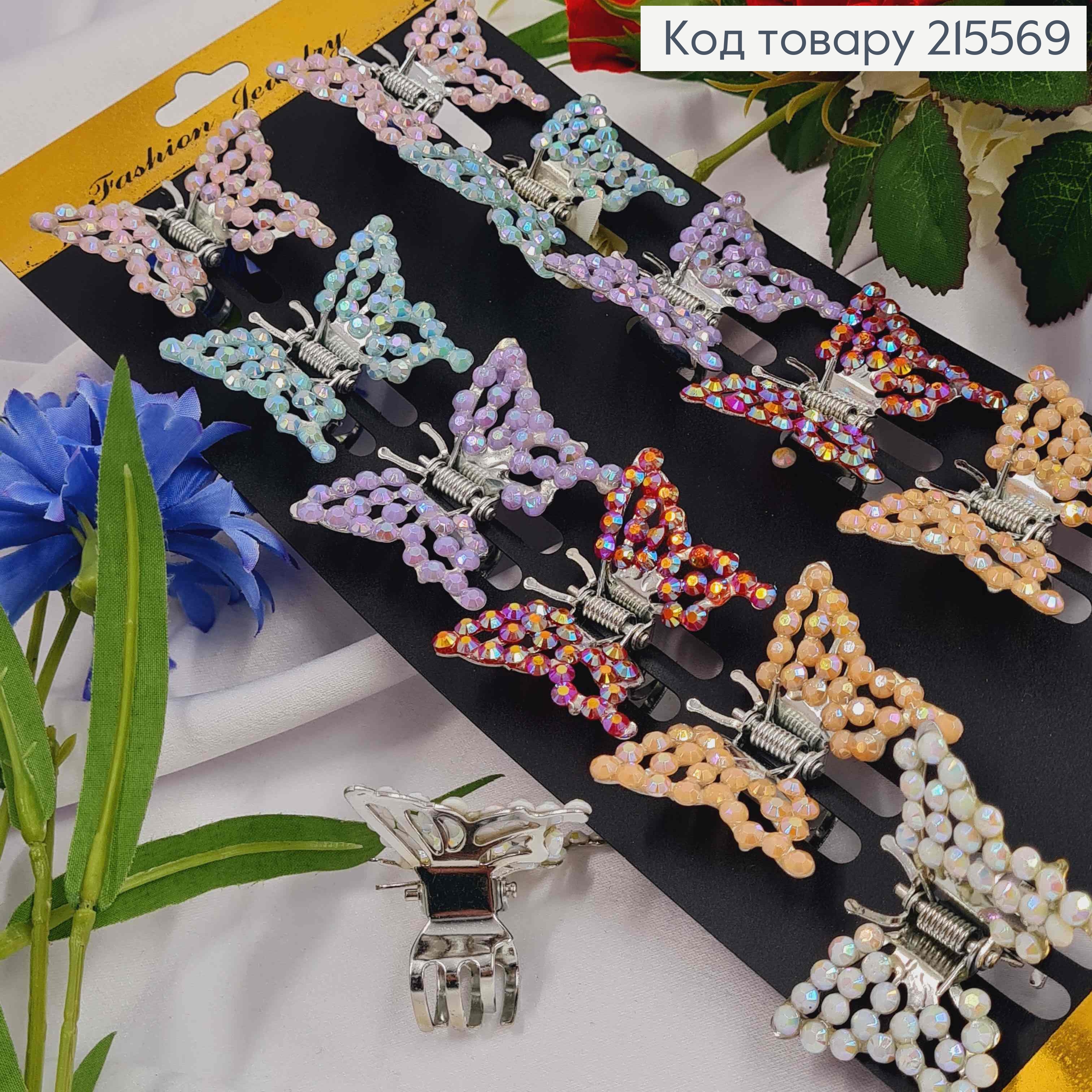 Краб пластик матовий "МЕТЕЛИК" зі стразами, 3,5*4,5см, Кольори в асортименті 211240 фото