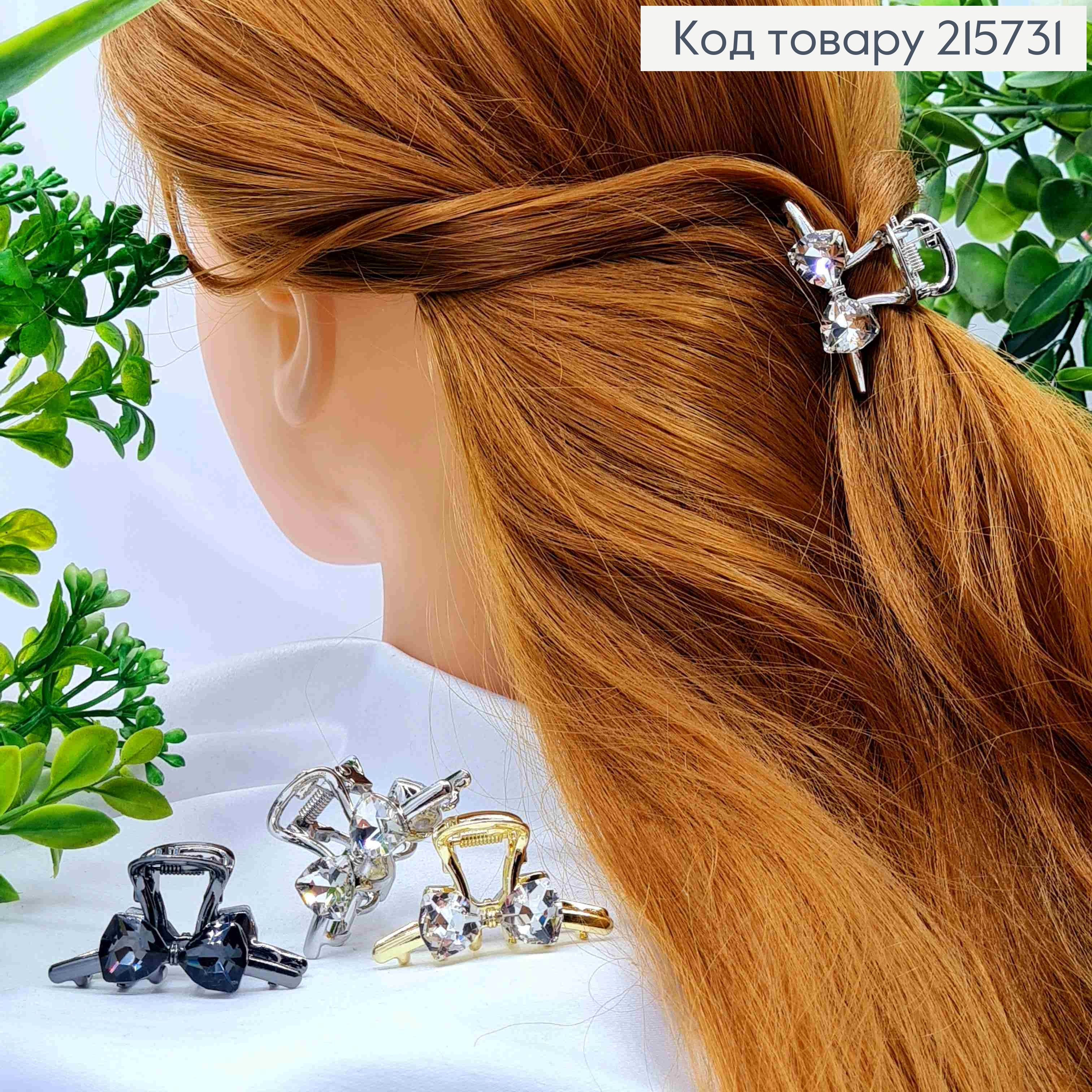 Краб метал  "Ажурний Бант" прикрашений Блискучими камінцями, 6см, кольору Металік 215775 фото