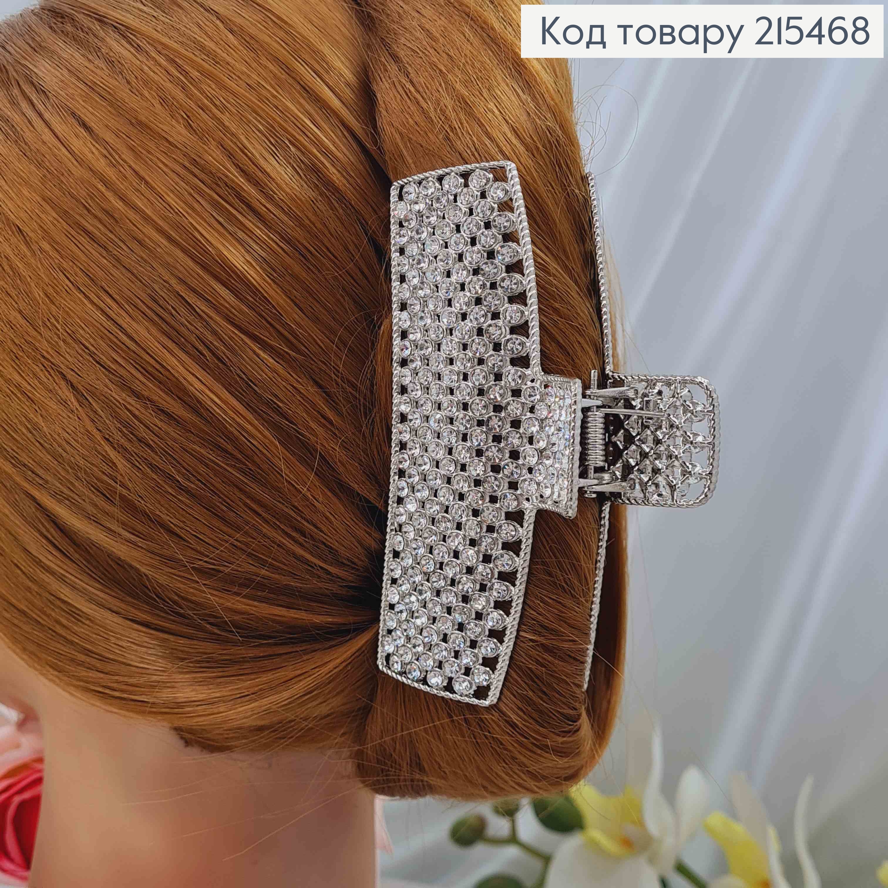 Краб метал  "Петелька" прикрашений Блискучими камінцями, 6см, Срібного кольору 215776 фото