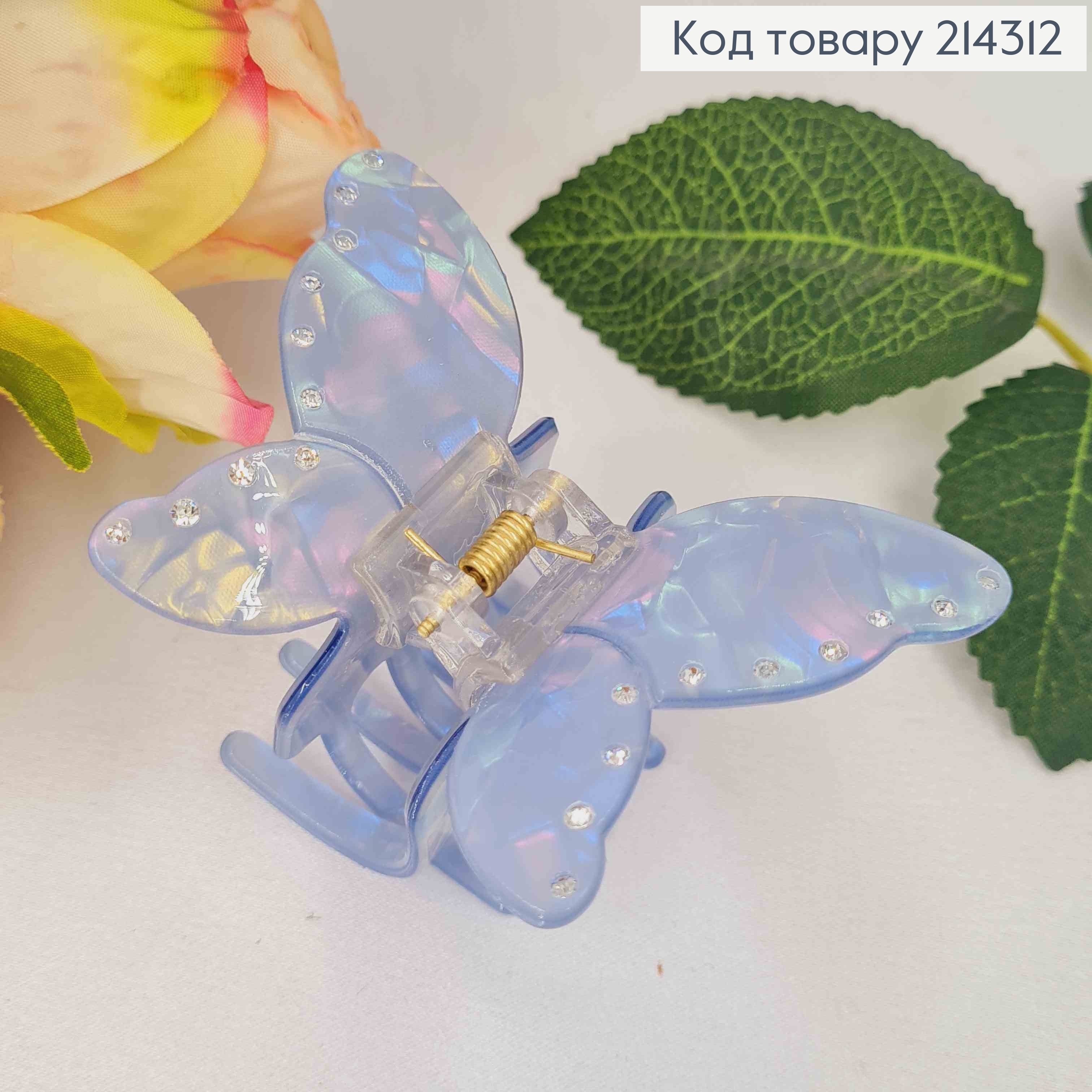 Краб пластик, МЕТЕЛИК з ажурними крилами, 7,5*8см, Перламутрово-Блакитного кольору 214284 фото