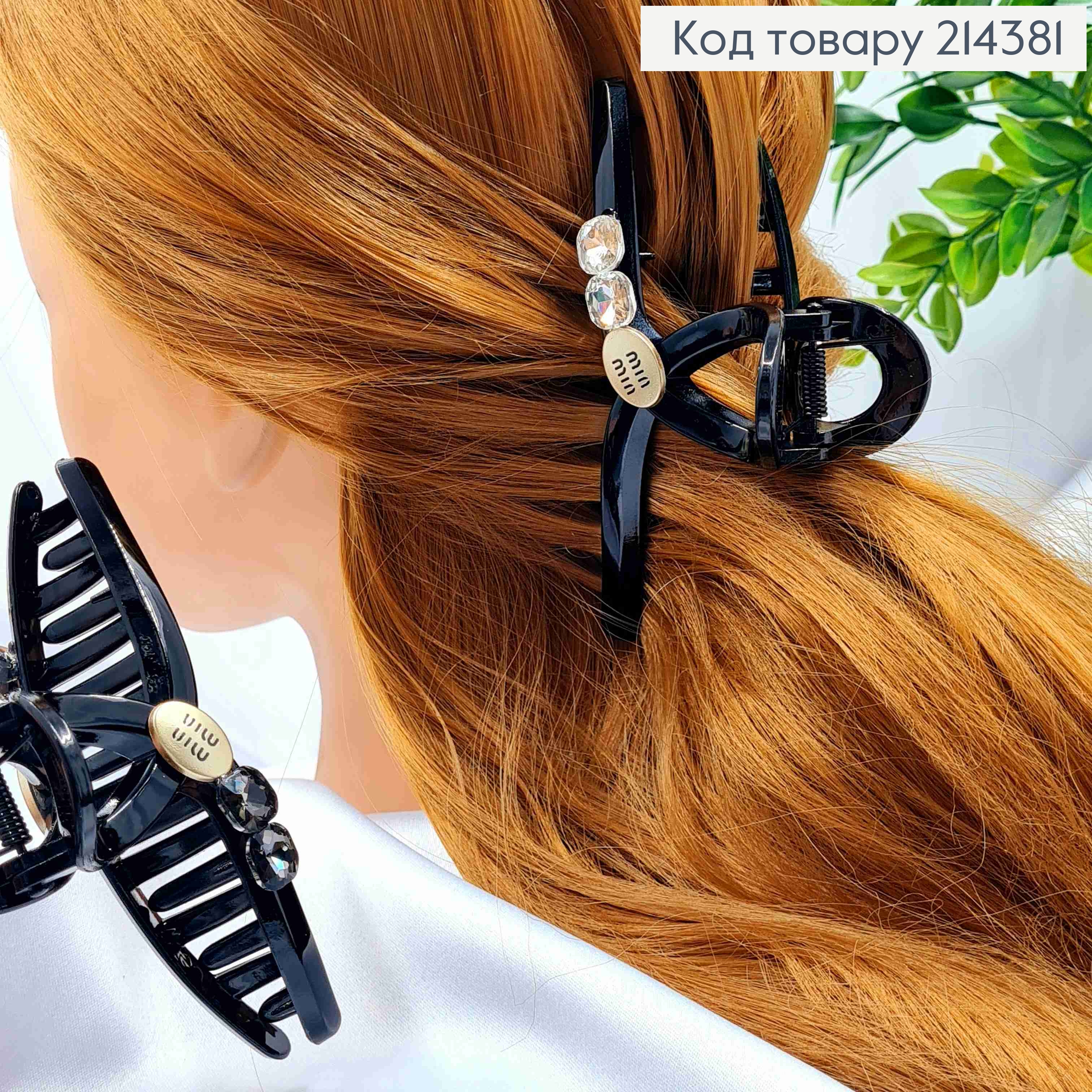 Краб пластик глянцевий "Петелька" з камінчиками MIN MIN, 11см, Чорного кольору