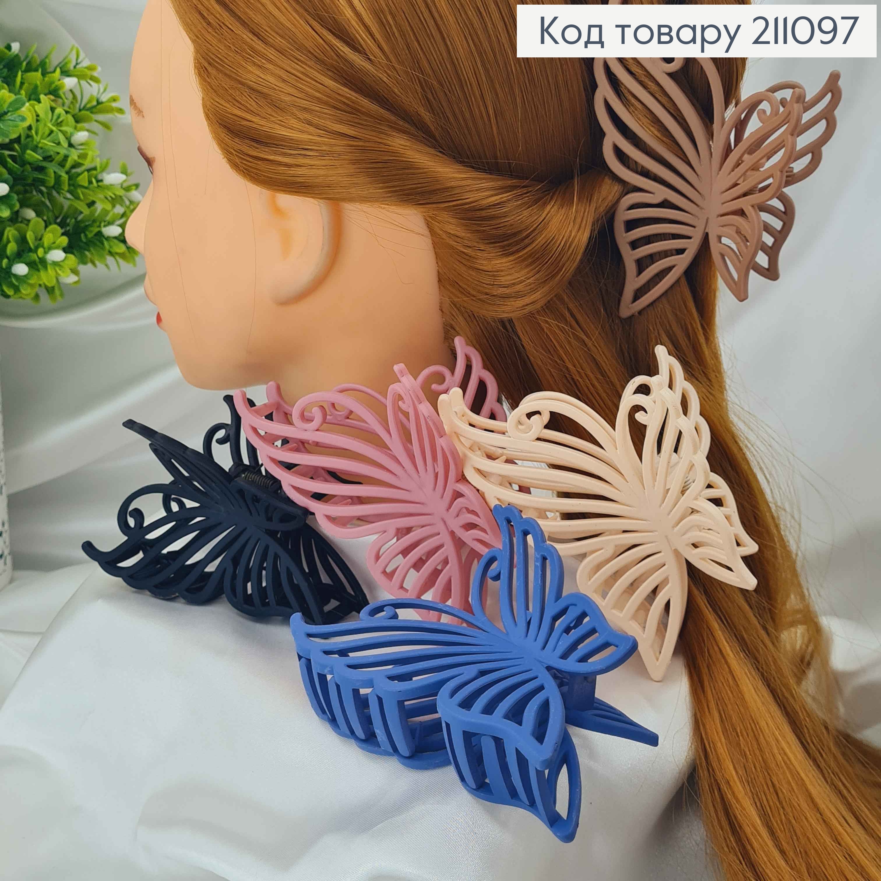 Краб пластик, МЕТЕЛИК з ажурними крилами, 7,5*8см, Перламутрово-Блакитного кольору 214284 фото