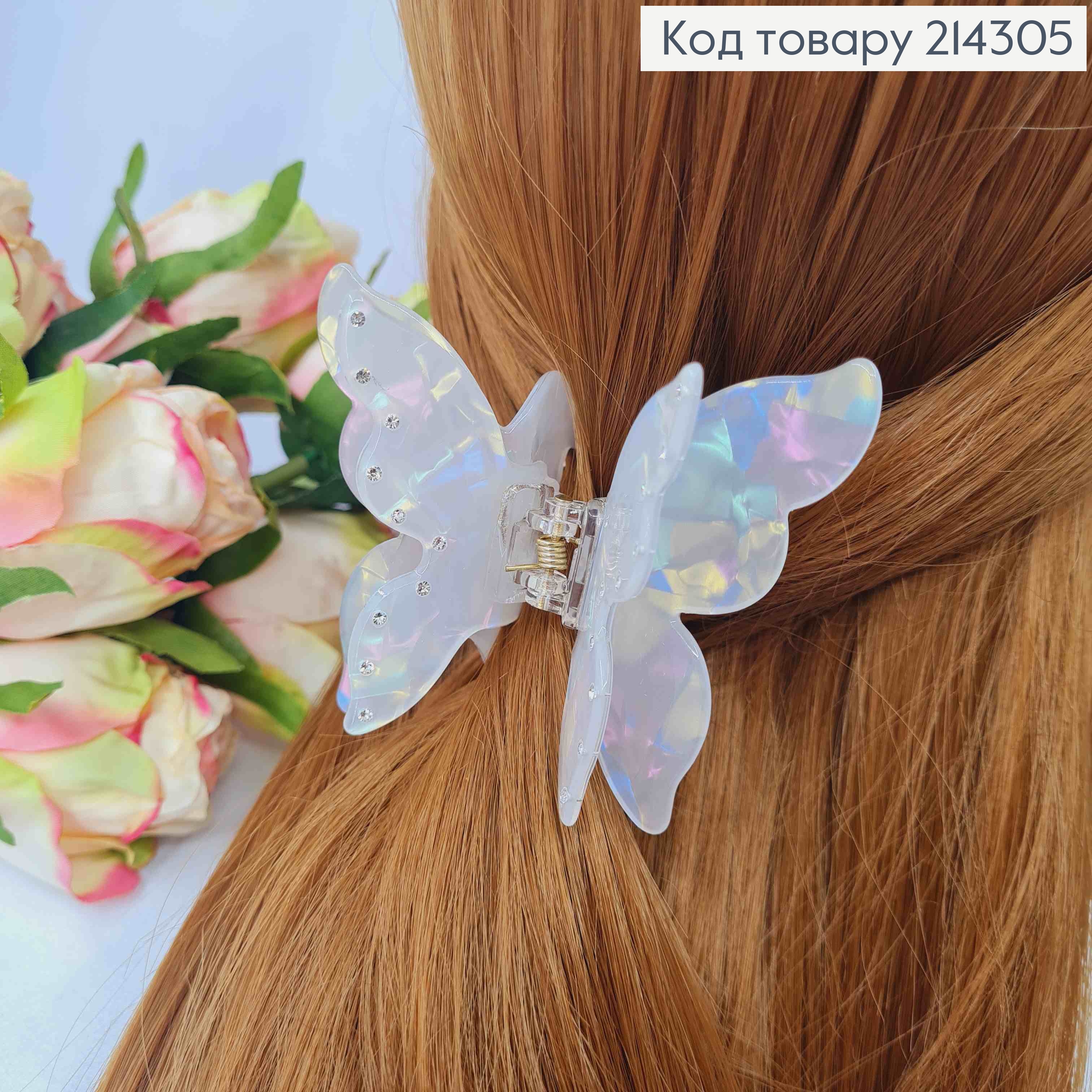 Краб пластик, МЕТЕЛИК з ажурними крилами, 7,5*8см, Перламутрово-Блакитного кольору 214284 фото