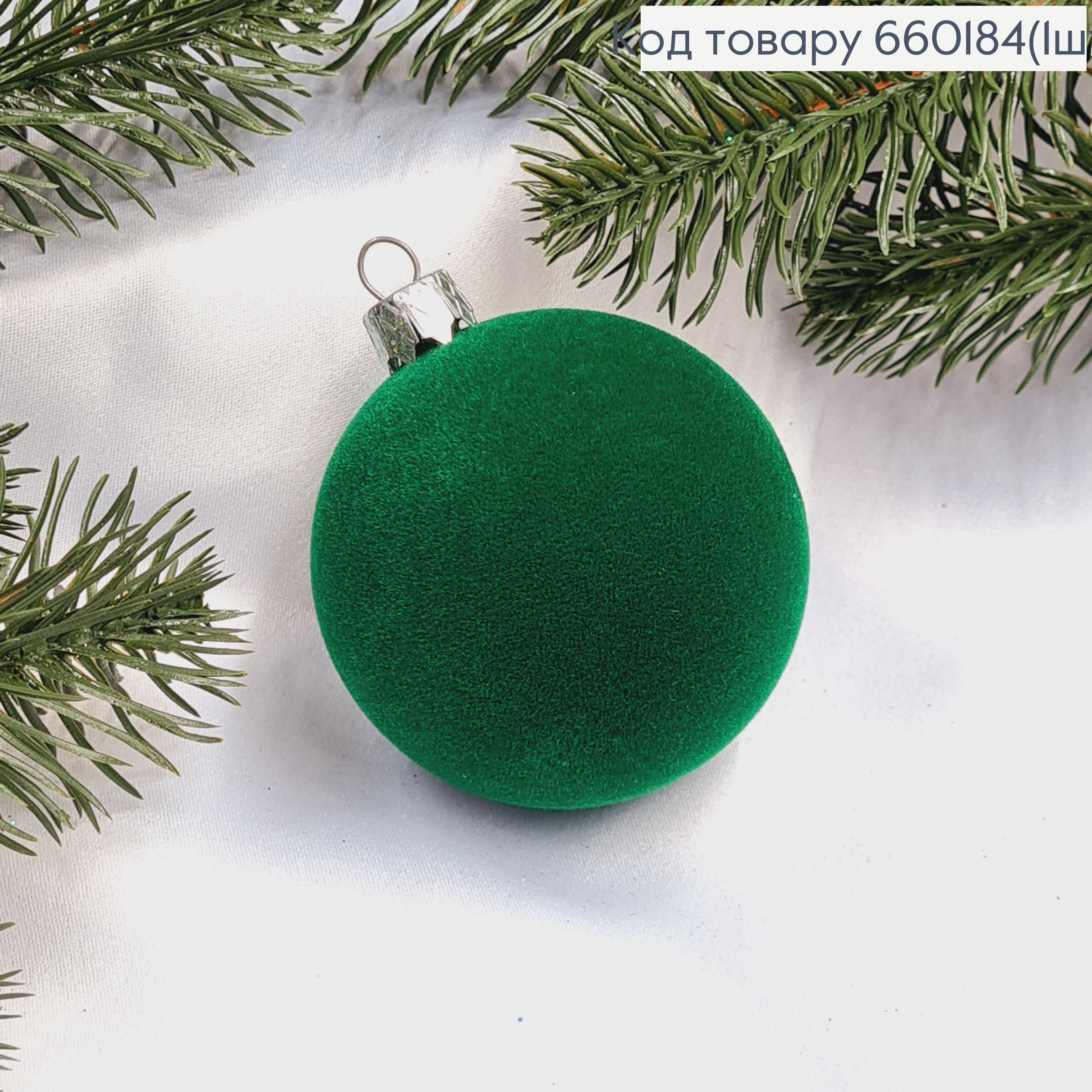 Куля (1шт), 60 мм "ОКСАМИТ", ЗЕЛЕНИЙ колір,новорічні прикраси, пластик, Україна