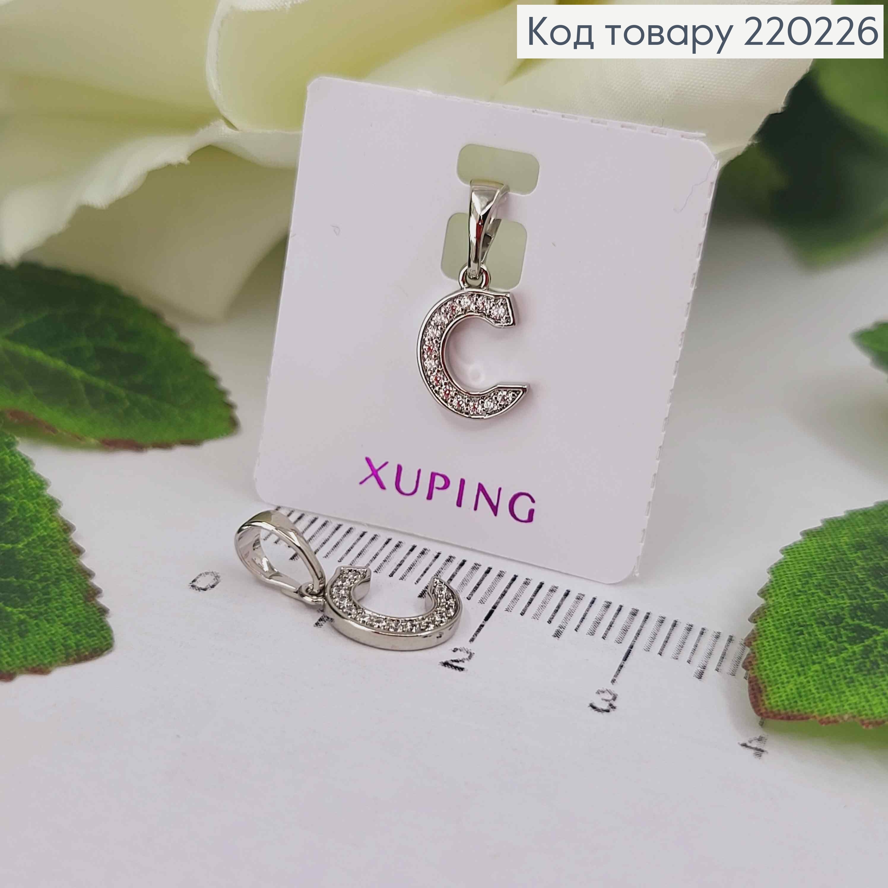Кулон родований, Буква "C" в камінцях, 1см, Xuping