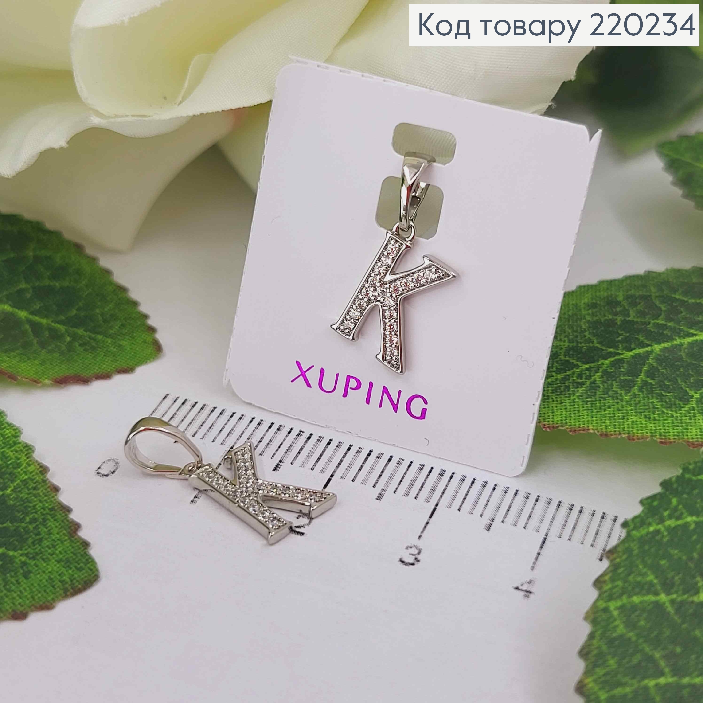 Кулон родований, Буква "K" в камінцях, 1см, Xuping
