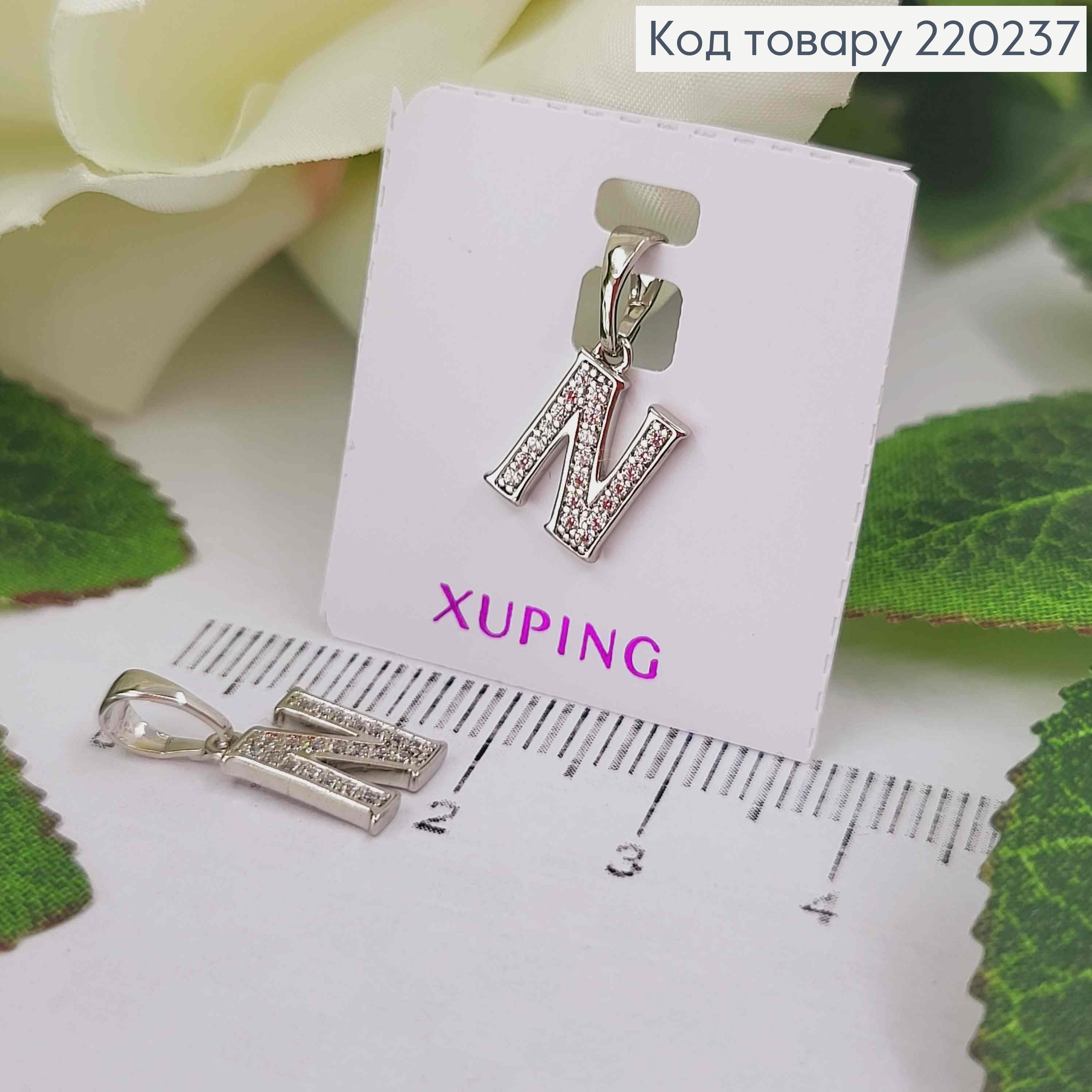 Кулон родований, Буква "N" в камінцях, 1см, Xuping