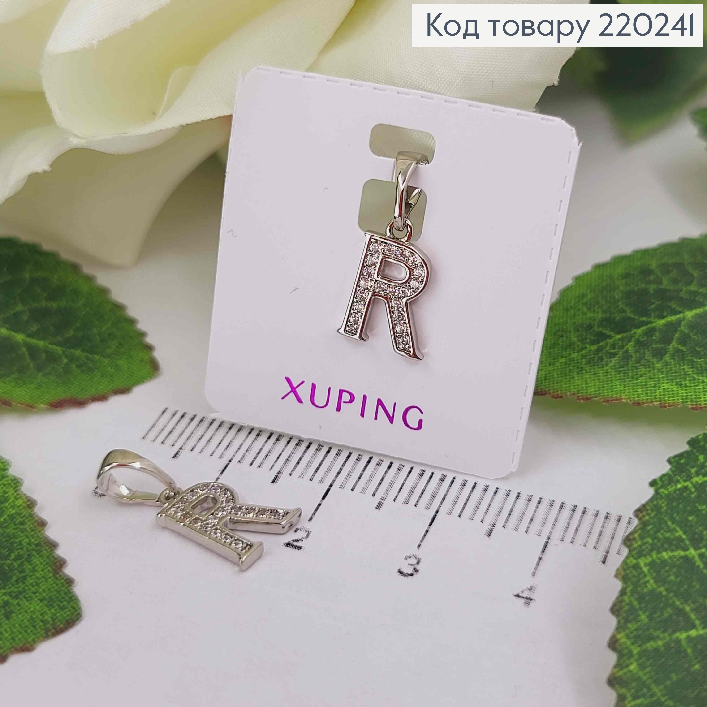 Кулон родований, Буква "R" в камінцях, 1см, Xuping