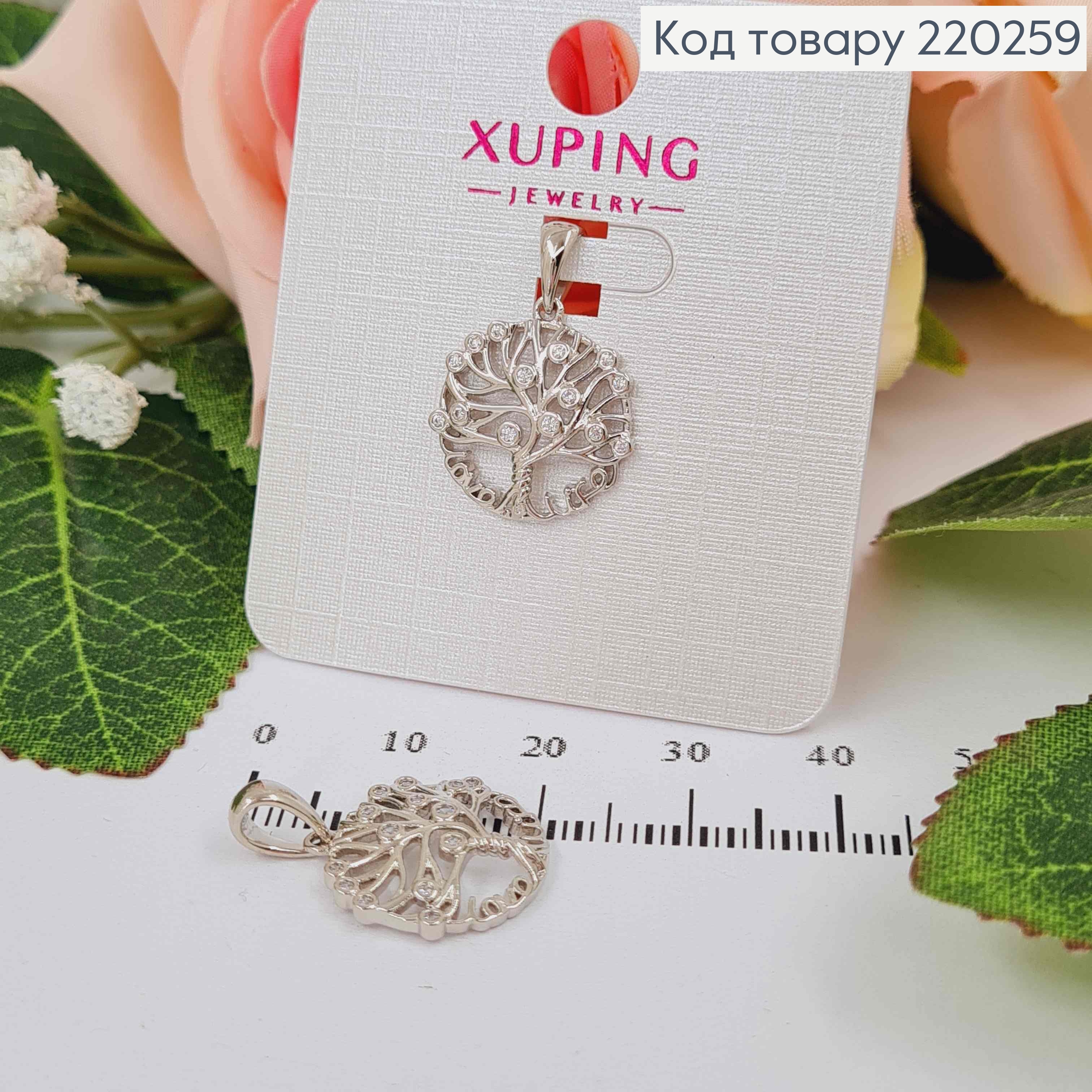 Кулон родований, "Дерево кохання" в круглій оправі, з камінцями, 1,5 см, Xuping