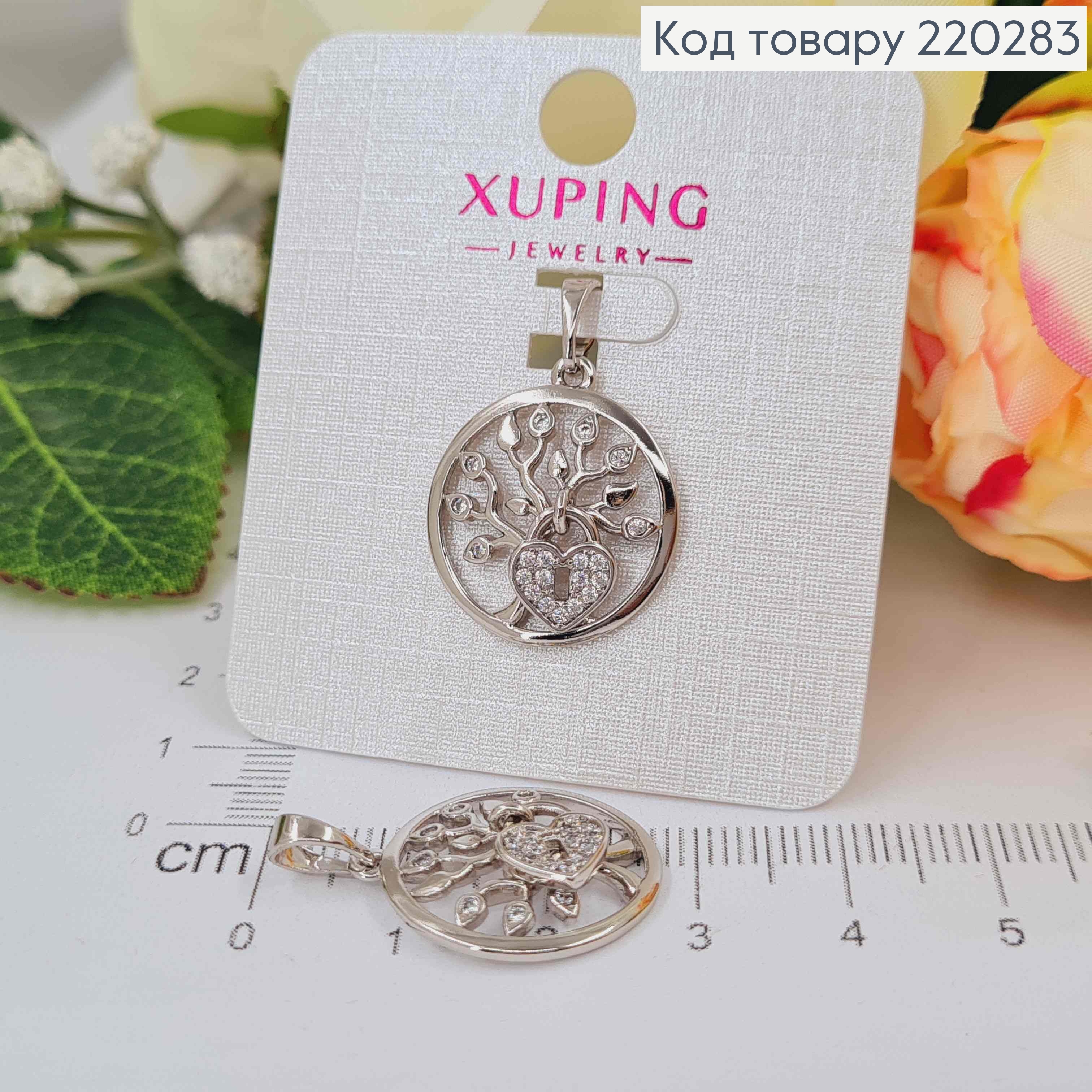 Кулон родований, "Дерево з замочком" з камінцями, в оправі, 2см, Xuping