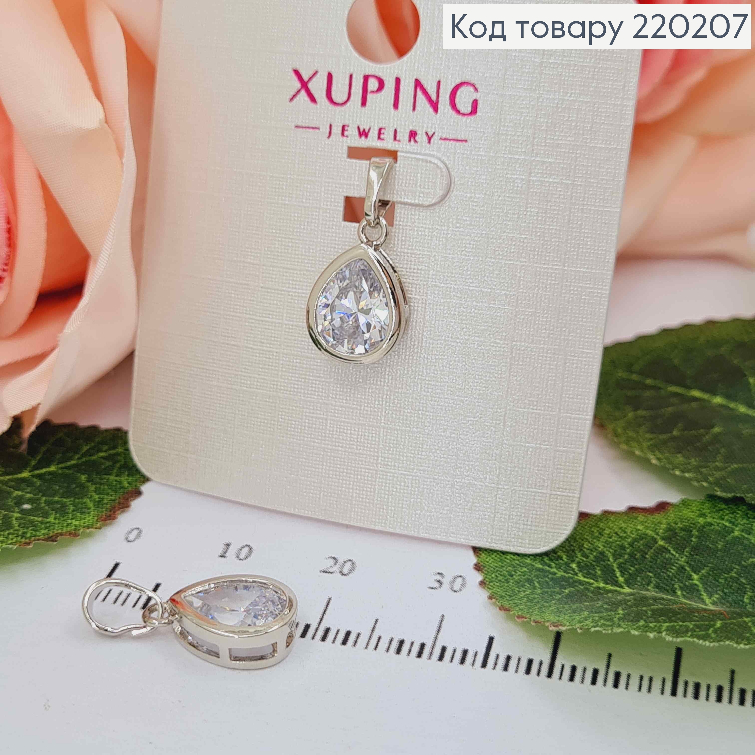 Кулон родований, Камінець в оправі, в формі крапельки, 1см, Xuping