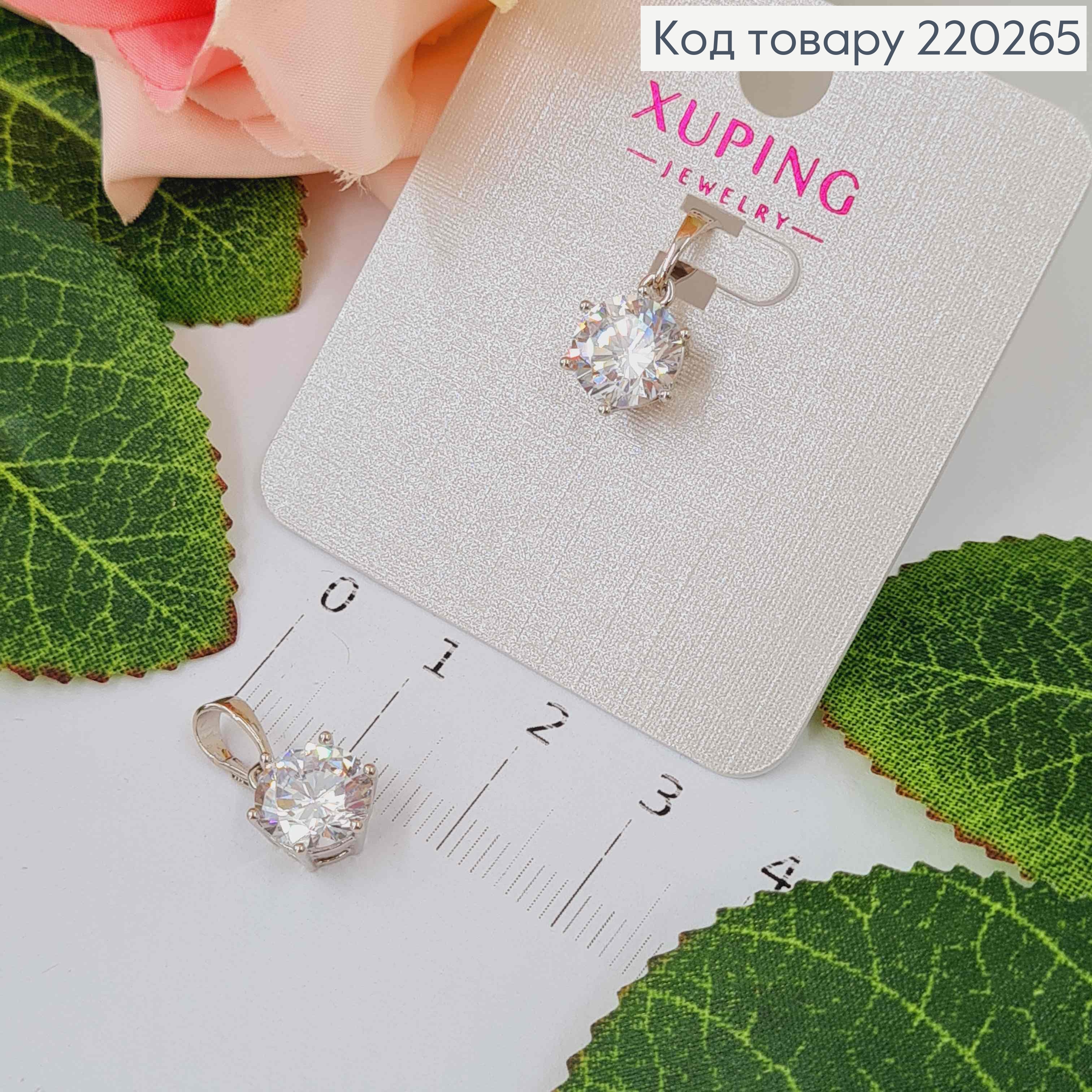 Кулон родований, круглий камінець, 9мм, Xuping