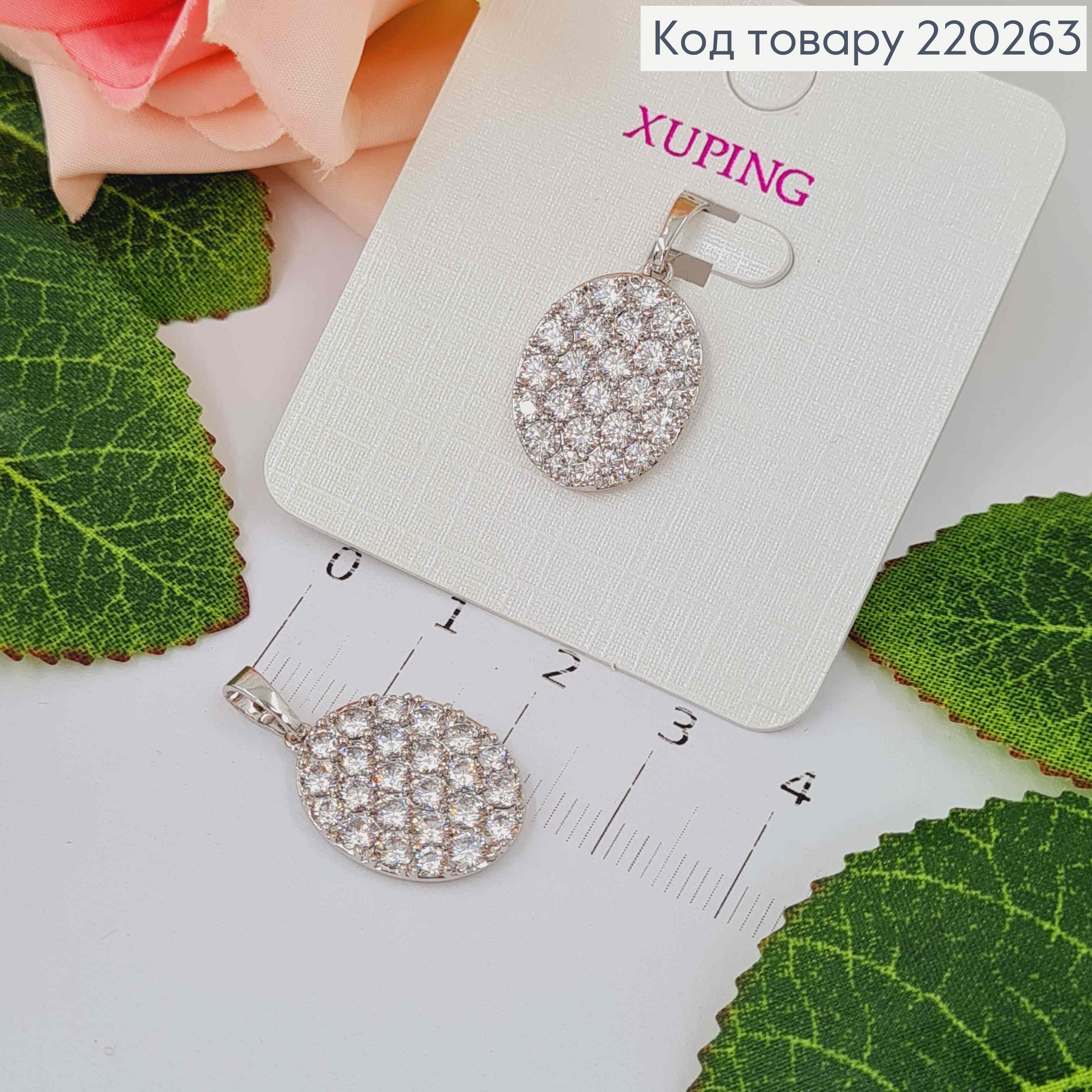 Кулон родований, Овальна пластинка в камінцях, 1,6см. Xuping